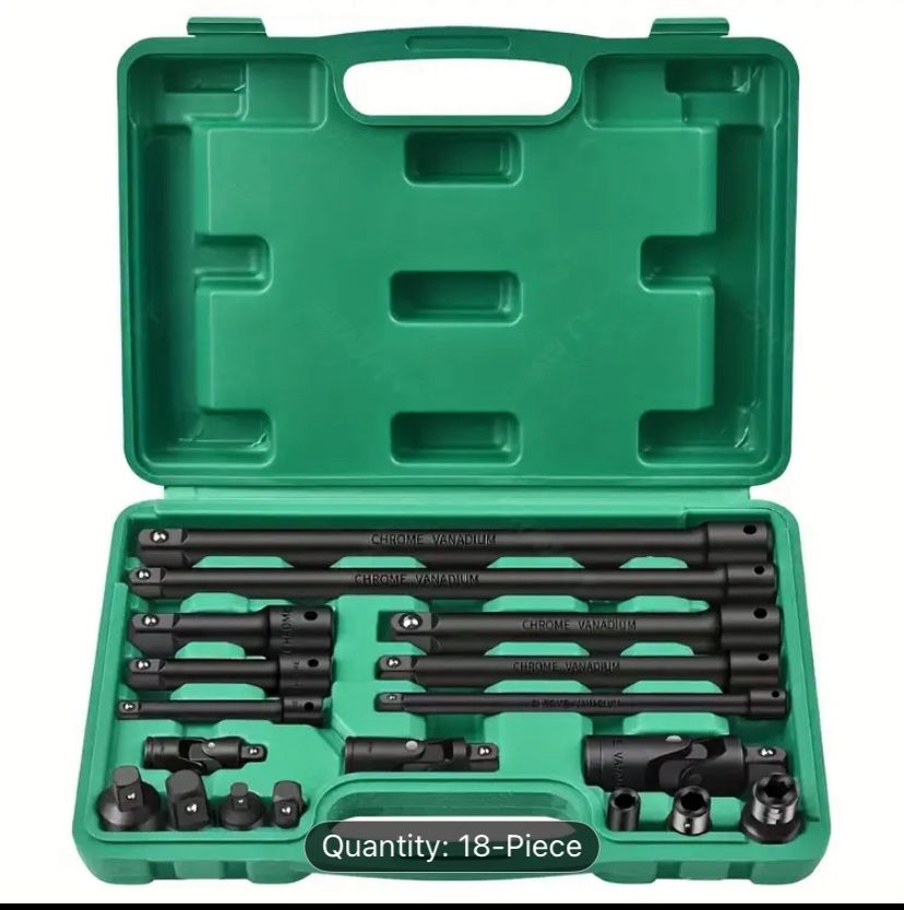 18pcs Extension Bar & Adapter Set | 1/4" 3/8" 1/2" Chrome Vanadium Steel | Universal Joint & Impact Coupler | for Power Tools & Auto Repair. It’s in the box completely new I am asking $35 the price is firm