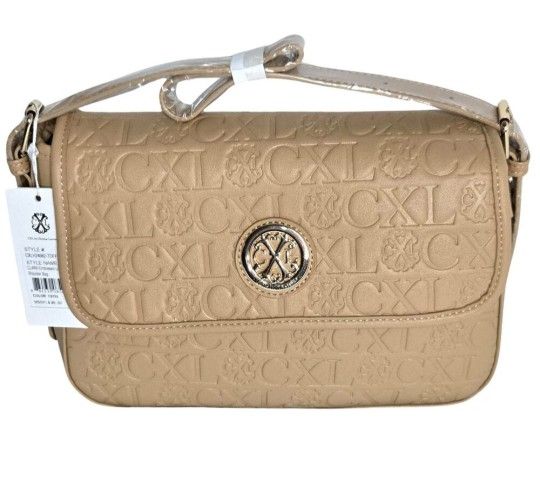 CXL by Christian Lacroix Clara Embossed Logo Shoulder Bag In Toffee NWT