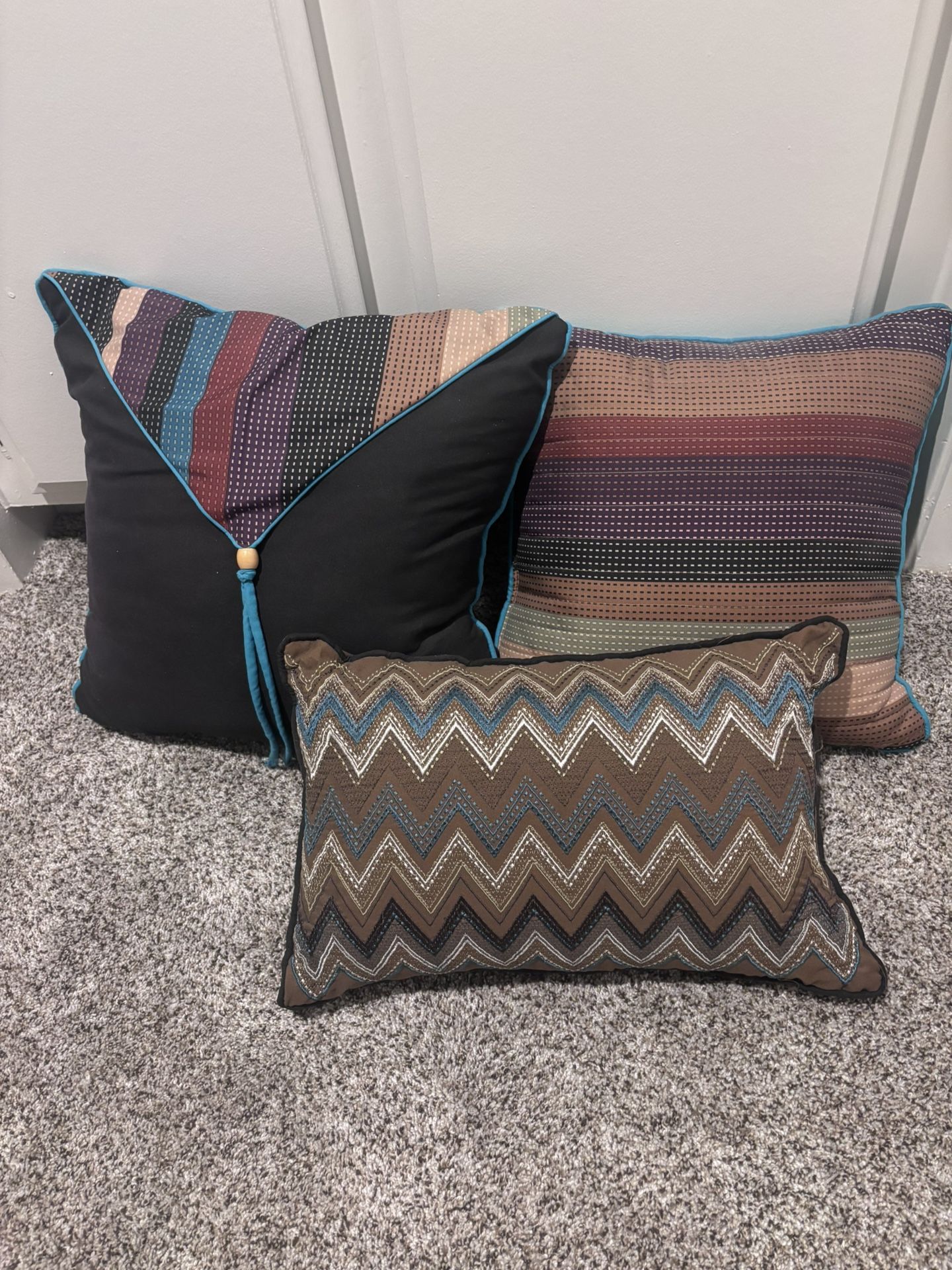 I have three pillows with multicolor fabric. See photos. They have only been used as a decorative item in a window seat.3 different sizes. $9 takes all 3! Irvine … near 405/culver/ main