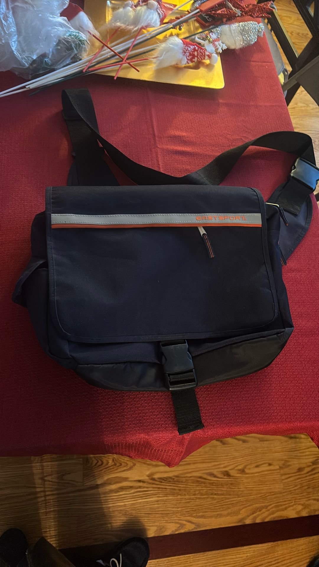 New East pack backpack, navy blue with the accent, red and gray. Three zipper pocket, one side pocket and very durable straps and closure clips. $15 cash only. Please only Messenger me if you want it. I live in Orland Park. Thank you.