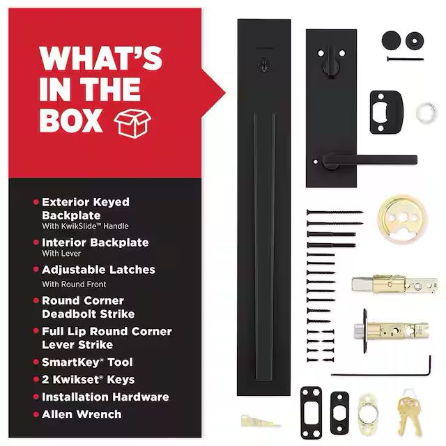 Kwikset Caerus Matte Black Single Cylinder Keyed Entry Door Handleset featuring Kwik Slide Technology