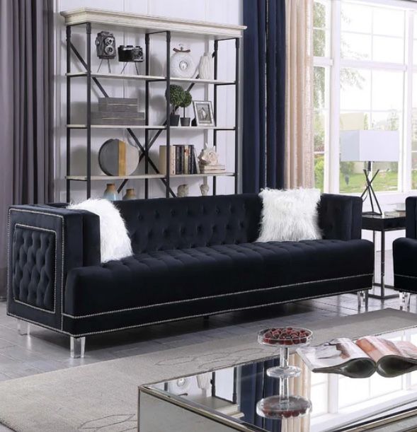 2pc Sofa + Loveseat In Black Tufted Velvet