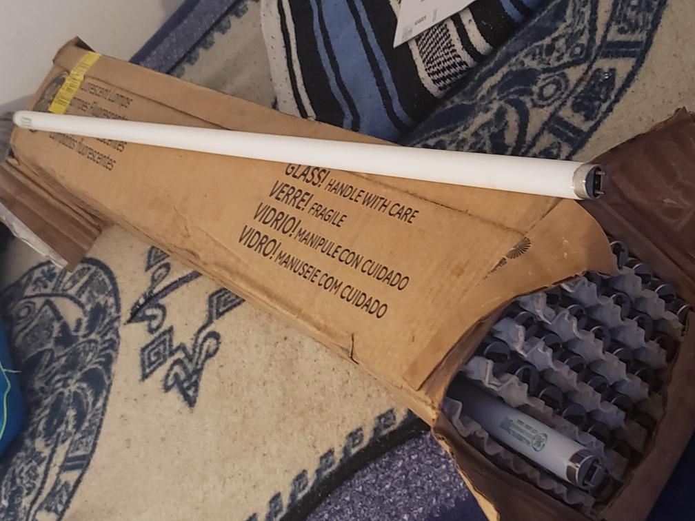 36. Box of fluorescent lightbulbs, 32 W all brand new never used asking 160 whole box or 10$ each