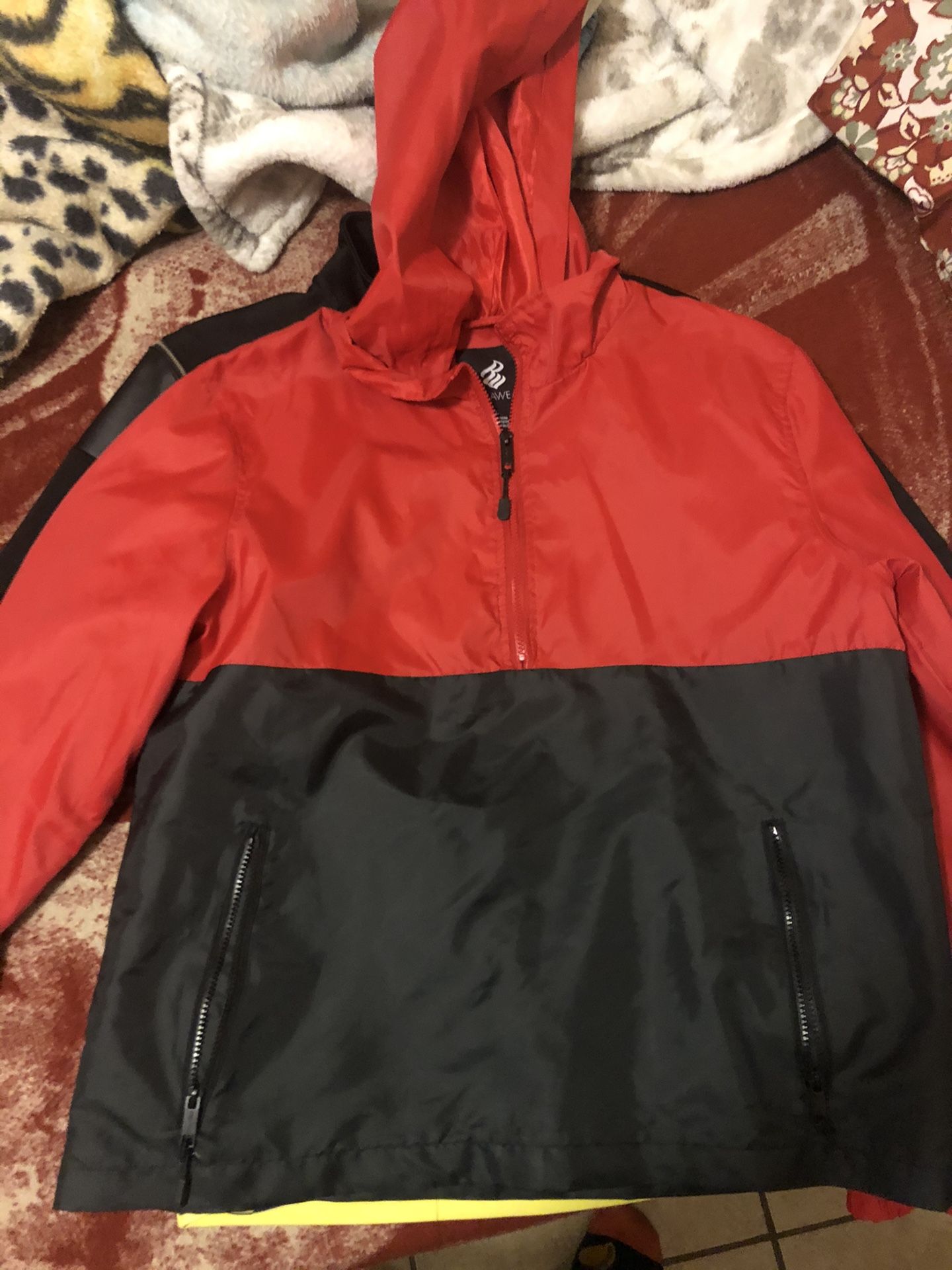 The jersey XL youth Black Jacket INC large The red wind breaker rockawear large The gray sweater medium Jeans old navy 25 or best offer