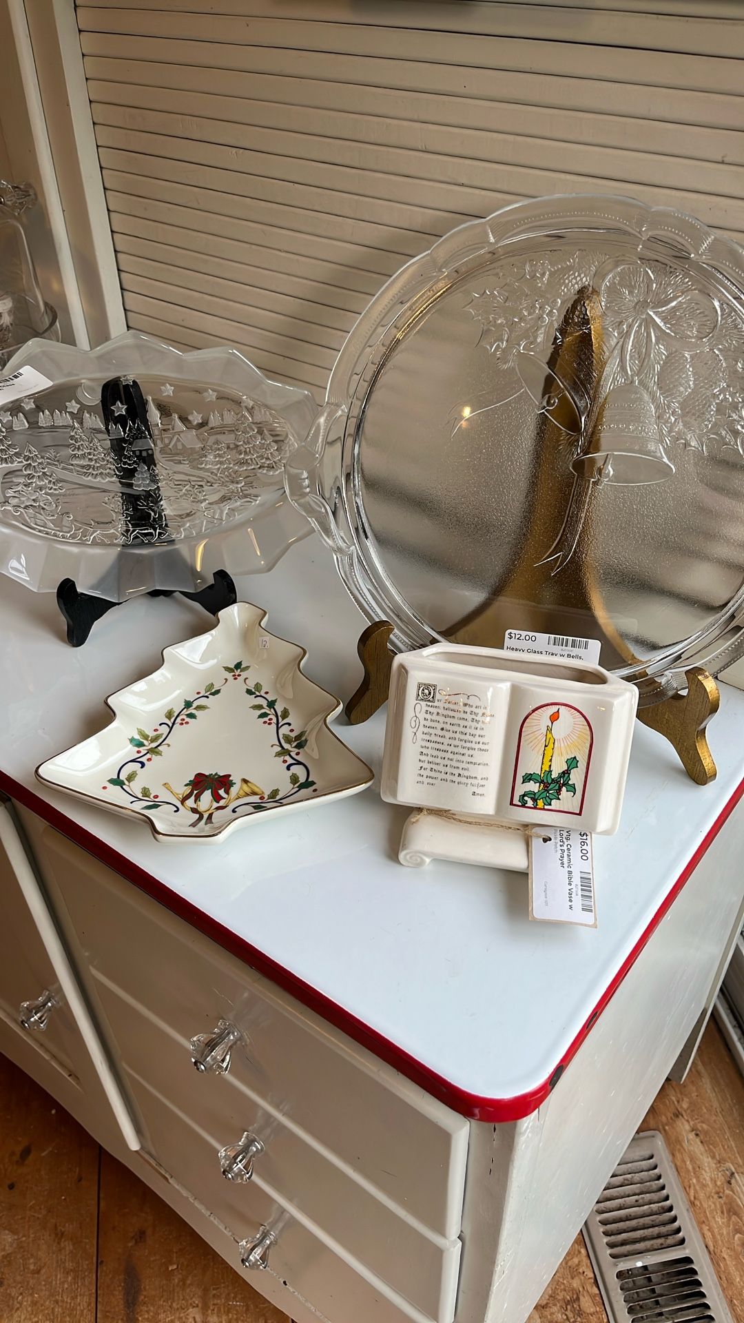 Mikasa Christmas Trays, Heavy Round Platter, Vintage Ceramic Bible w Lord’s Prayer