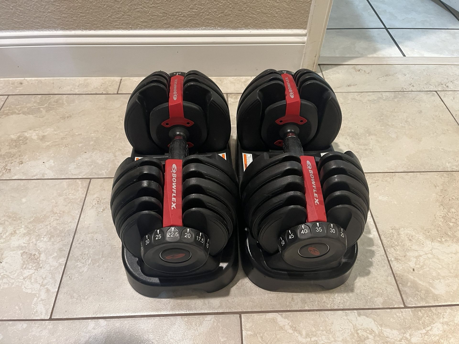 Adjustable Bowflex 552 Dumbbells. Goes from 5 to 52.5 lbs. Willing to negotiate price within reason but would prefer price listed.