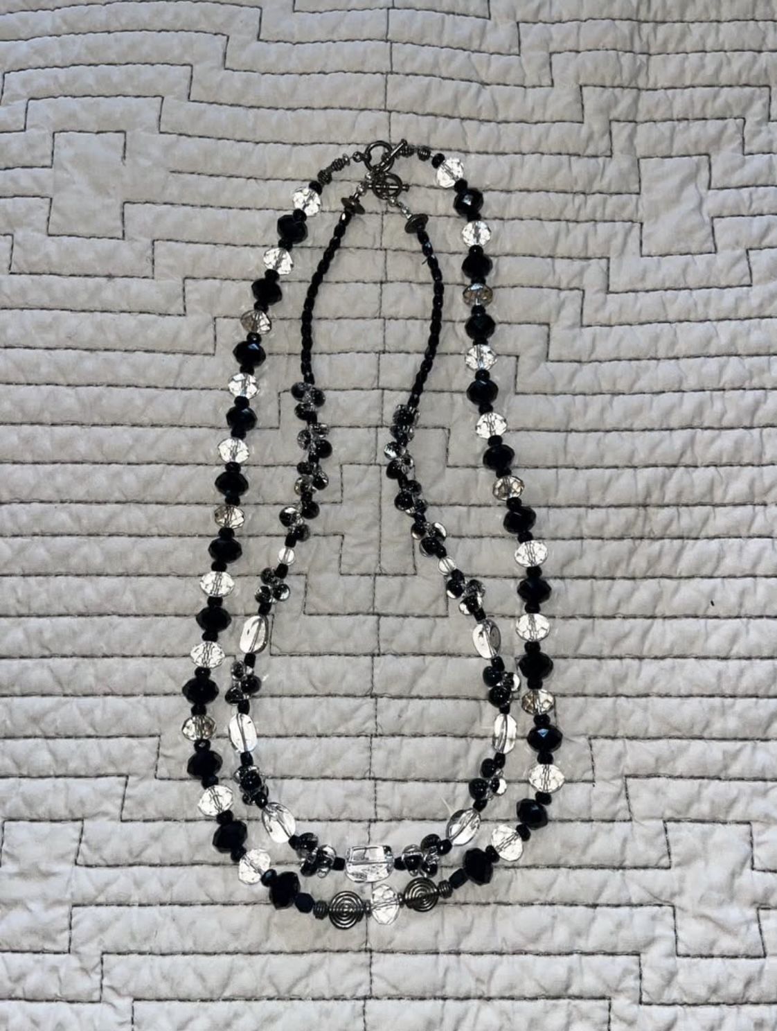 Pair of Black & Clear Crystal Bead Necklaces with Silver Accent