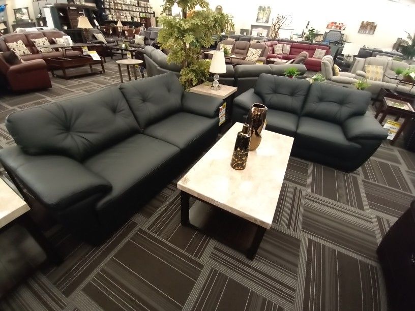 Top Grain Leather/ Black Sofa & Loveseat Stationary Last One!!! TAKE HOME TODAY!!!