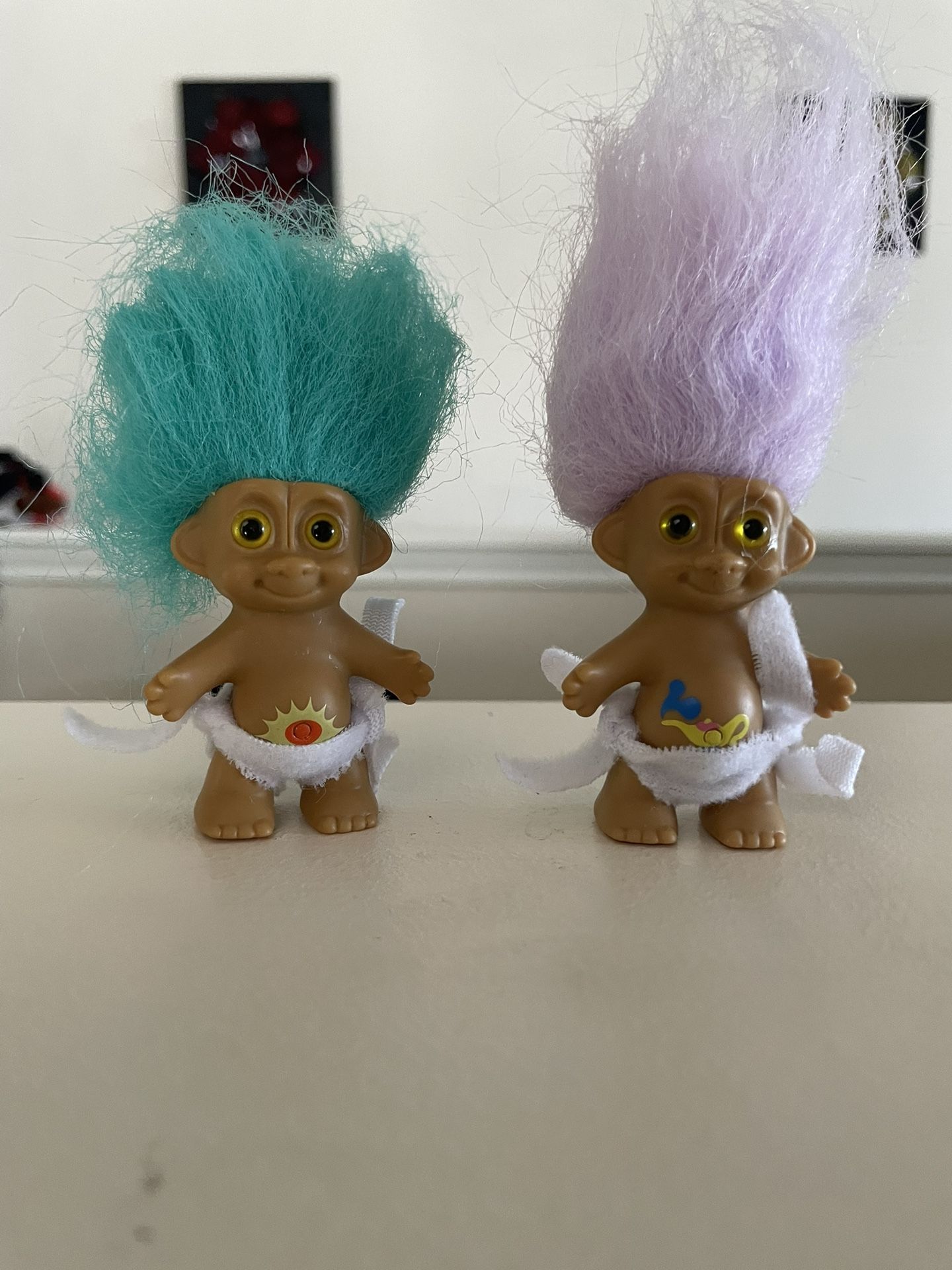 1998 Trolkins Troll Dolls - Cyan & Light Purple (Sunburst And Genie Lamp)