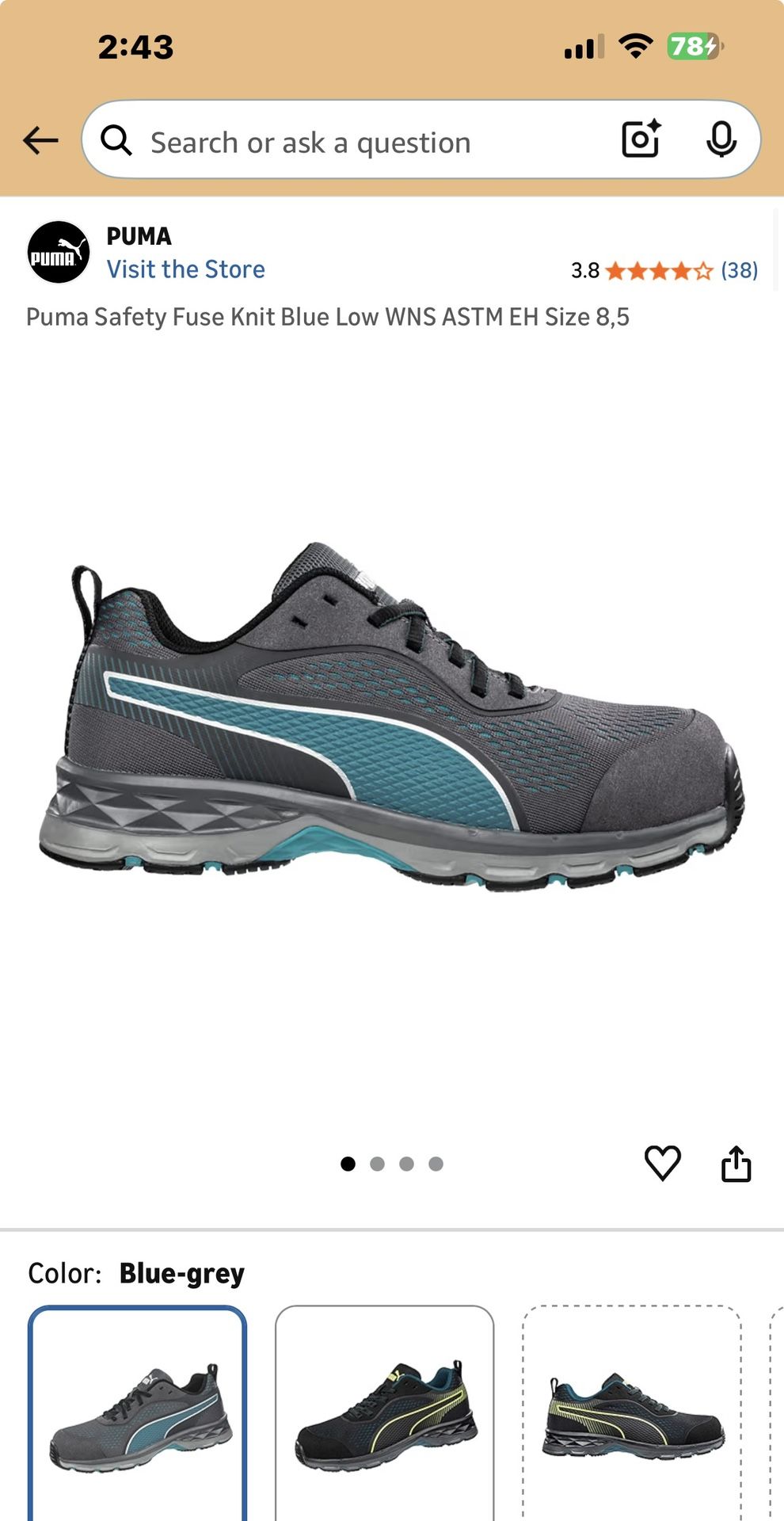 Puma Fuse knit blue/gray steel toe (safety Shoes) New In box