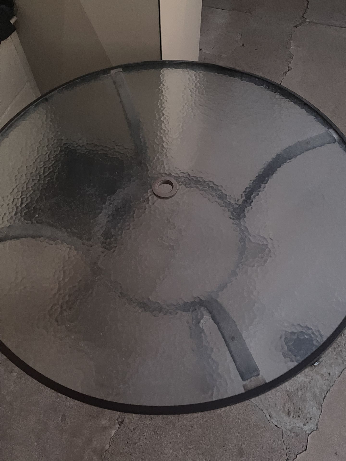Glass top table with opening for umbrella