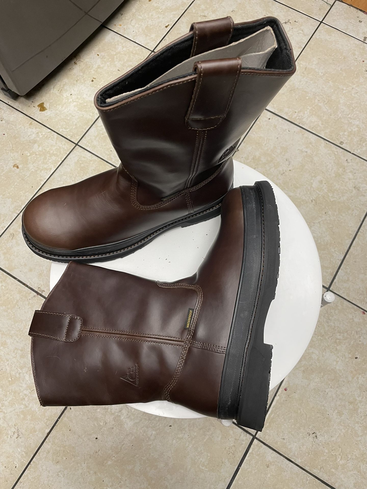 Ace Work Boots Water & Oil Resistant Size: 12M Color: Brown