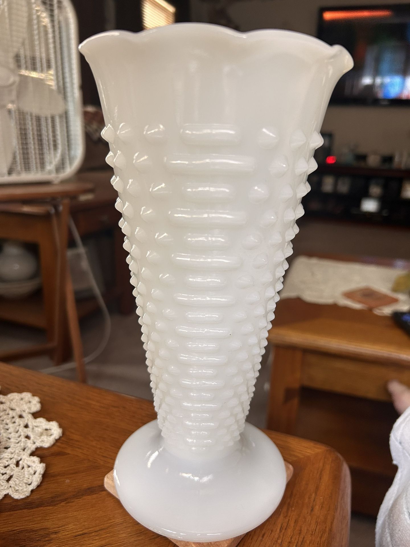 Vintage White Milk Glass Hobnail Large Vase Tall Footed 9.5" Tall