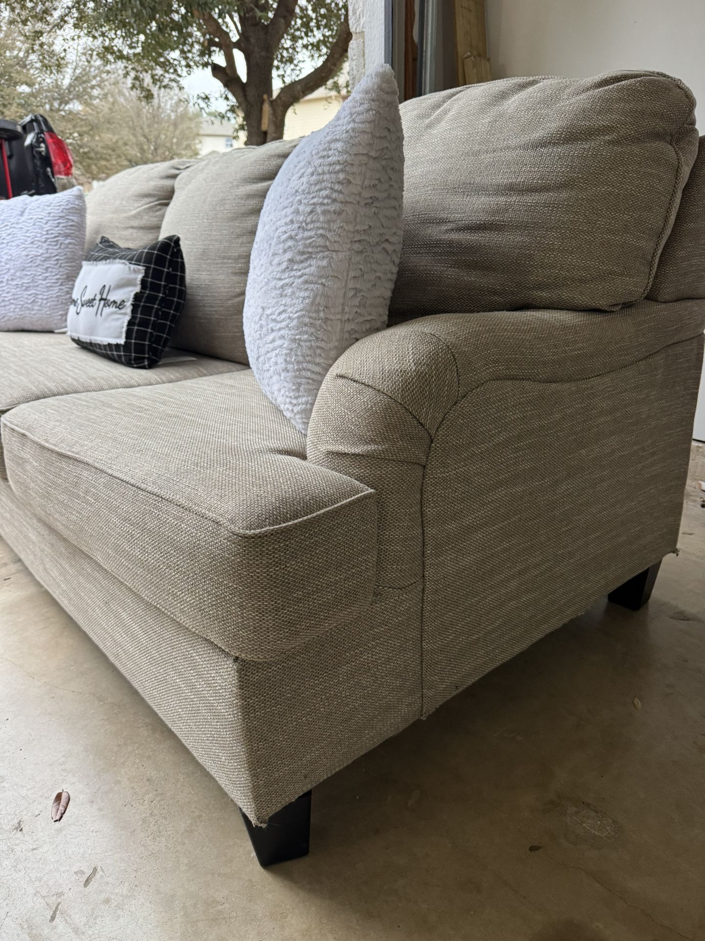 Normal use overall in great sturdy condition, small pet at home but has been vacuumed and cleaned, all cushion covers are removable for washing machine, Sofa de uso en buenas condiciones, mascota pequeña en casa pero se limpió y se aspiró , puede ver primero área de sea world.