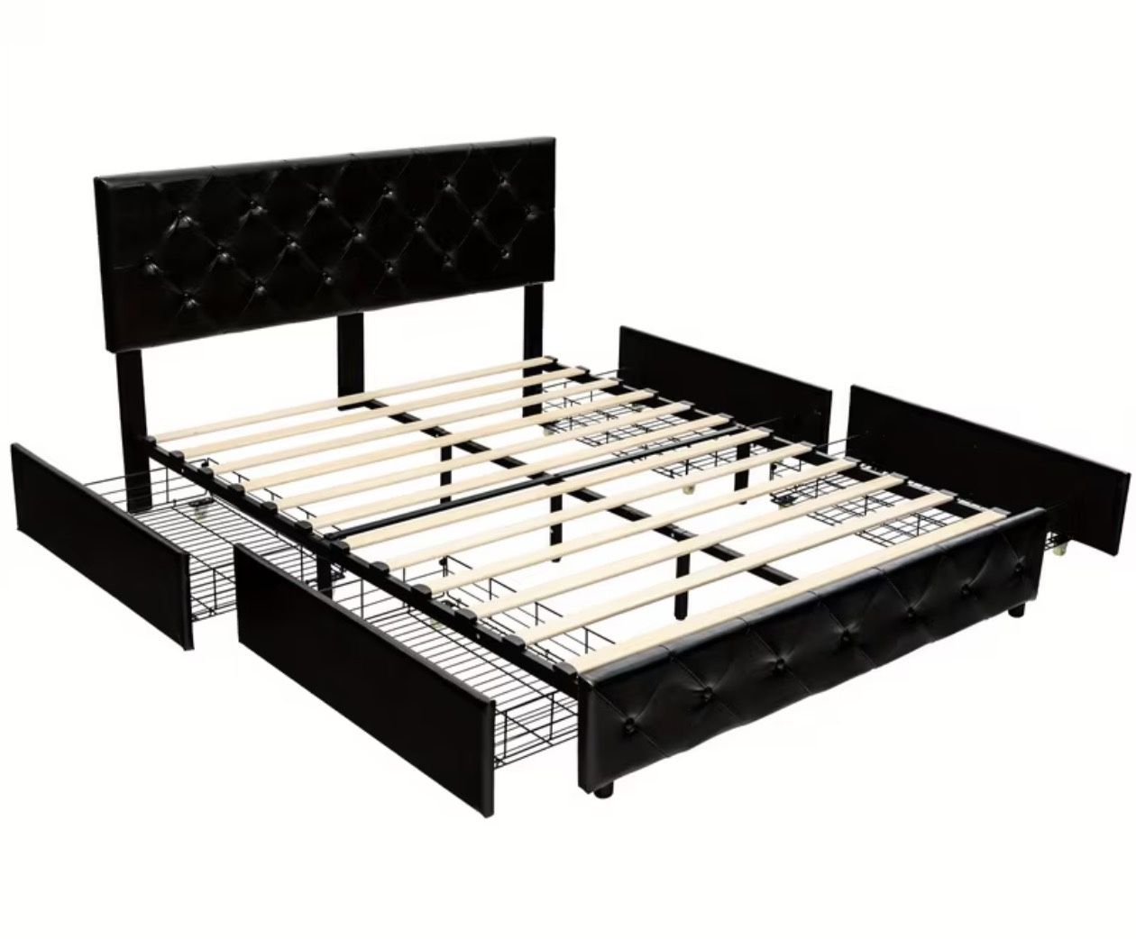 Queen Size Bed Frame Black Leather All Wood Slats Are There Plus Extra Asking 150