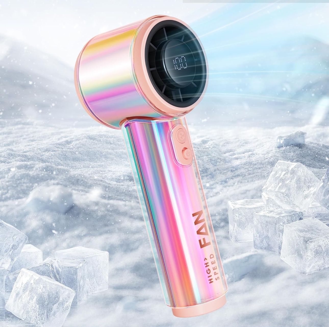 14000 RPM Super Power: Powerful portable handheld fan adopts advanced 5 blade, with high-speed brushless motor, providing a maximum wind speed of up to 14000 RPM Exclusive Rainbow Flowing Design: Where cutting-edge design meets dazzling Light. Watch the portable turbo fan come alive with a mesmerizing, color-shifting glow in every ray of light 10 Hours Long-Lasting Battery Life: This rechargeable handheld fan that uses an energy-efficient battery provides up to 10 hours of battery life(depending on different speeds) 1-100 Speeds Turbo Wind: Mini handheld fan provides 1-100 speeds, adapt to your wind needs in different environments and moods Small Size: This personal fans is small and delicate, easy to carry as a pocket fan. Suitable for indoor and outdoor in summer, such as office, shopping, riding, camping, climbing, traveling, beach, cruise, kitchen etc.
