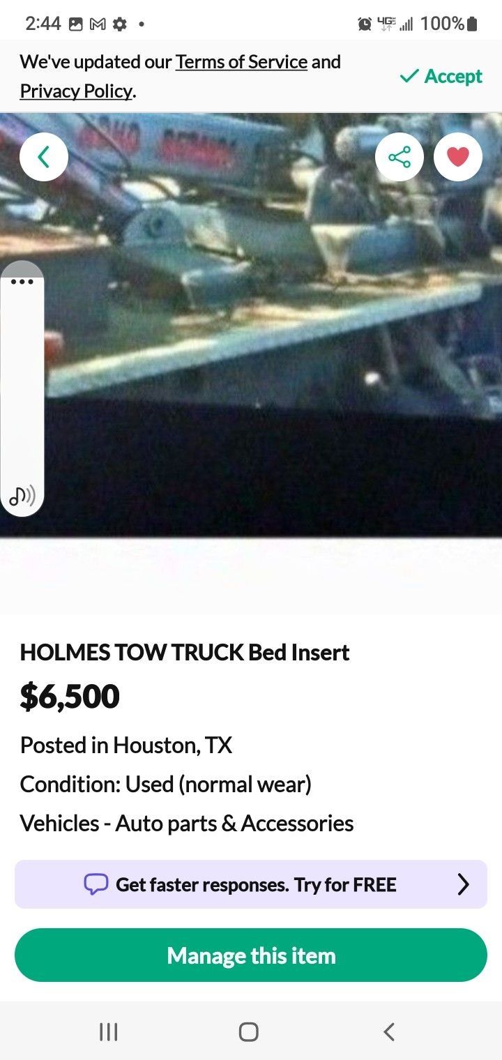 USED HOLMES TOW TRUCK BED INSERT WITH WHEEL LIFT. $6 , 500.00 ( MAKE. .REASONABLE OFFER. )