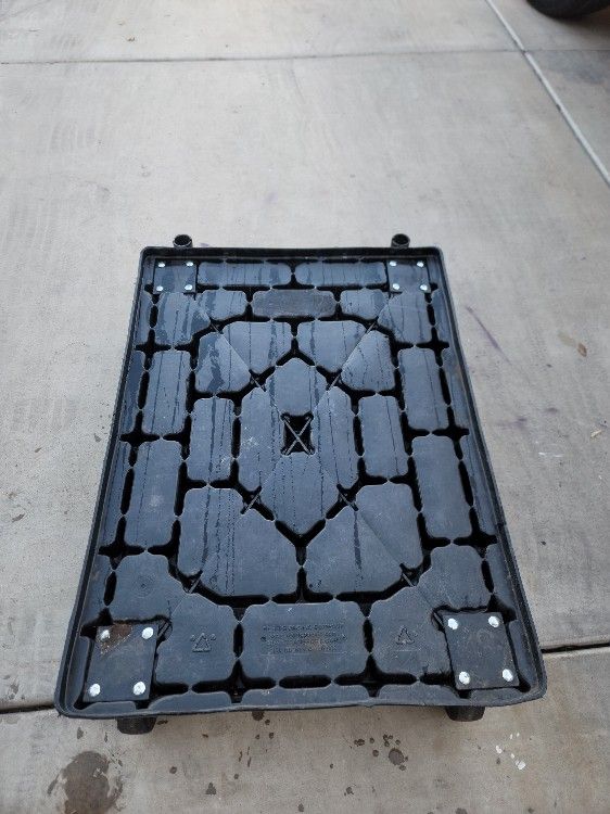 Industrial grade transport cart. 41" x 30", wheel are 6' diameter x 2" wide. Has an axel with 2 wheels fixed the other 2 are free moving. Does not come with a handle however there is a spot for one if desired. $250
