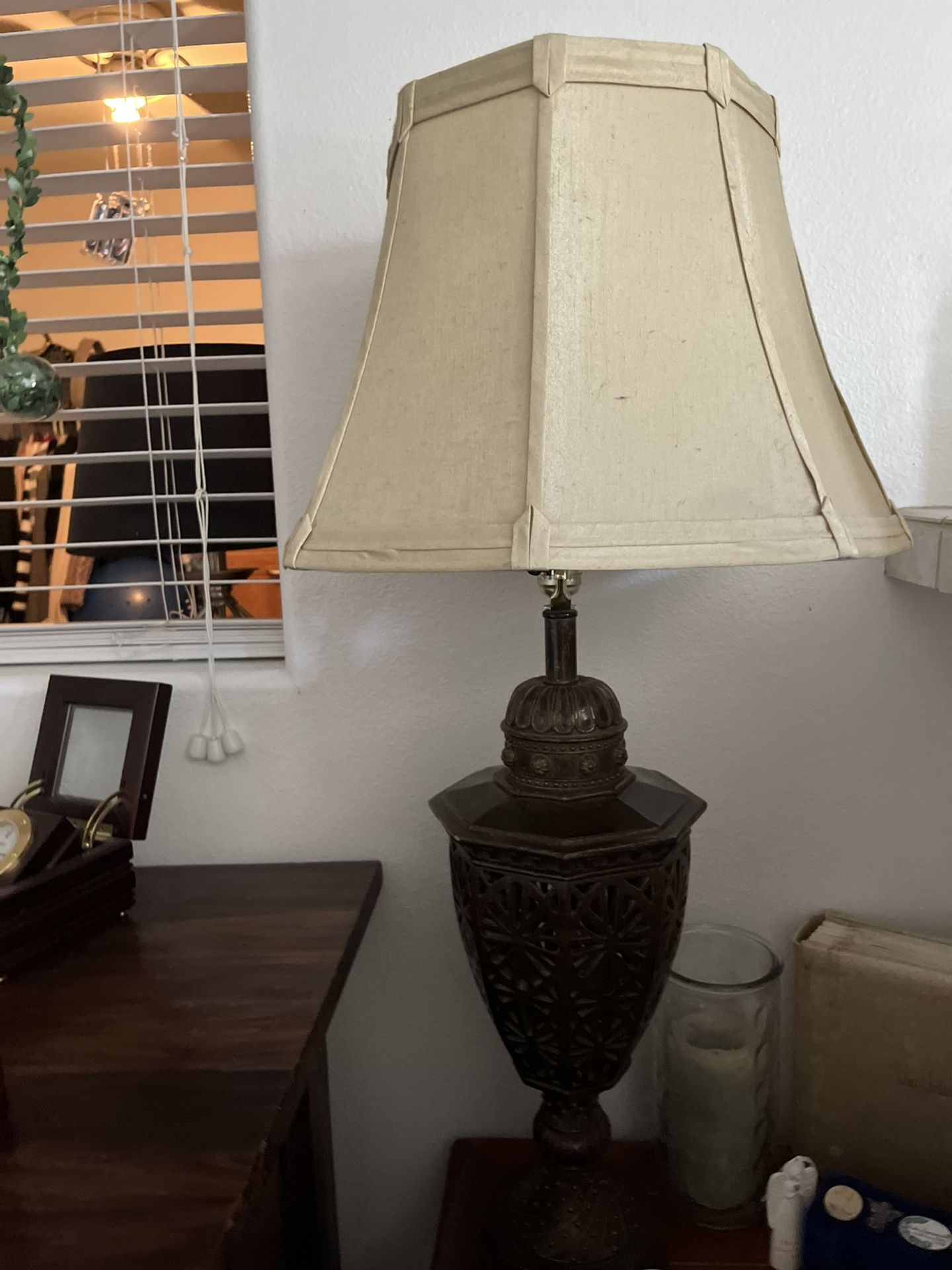 Antique Lamp, octagon shape with gorgeous intricate unique design. 3feet 2 inches tall.