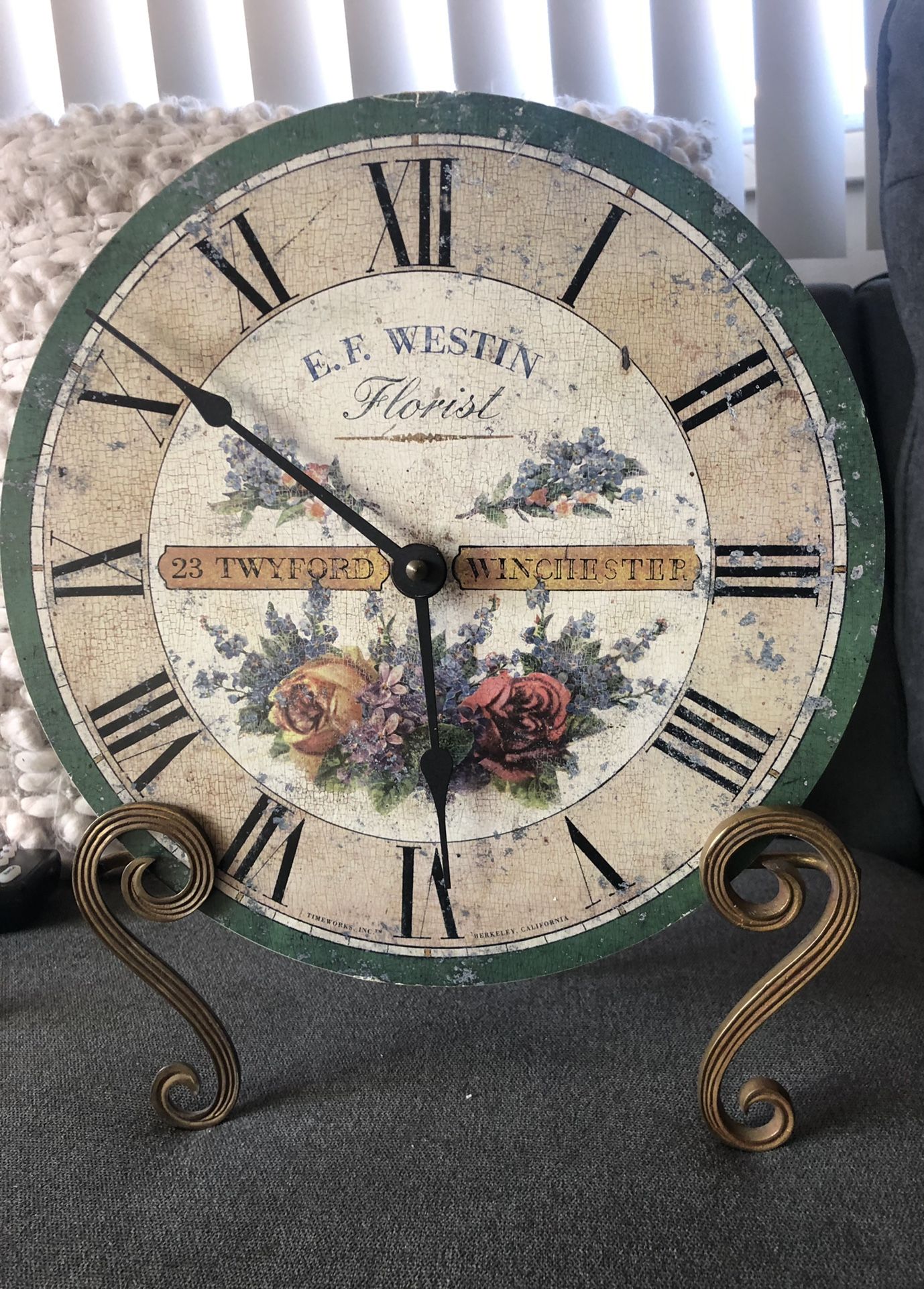 Beautiful Shabby Chic Clock (either wall or comes with stand)