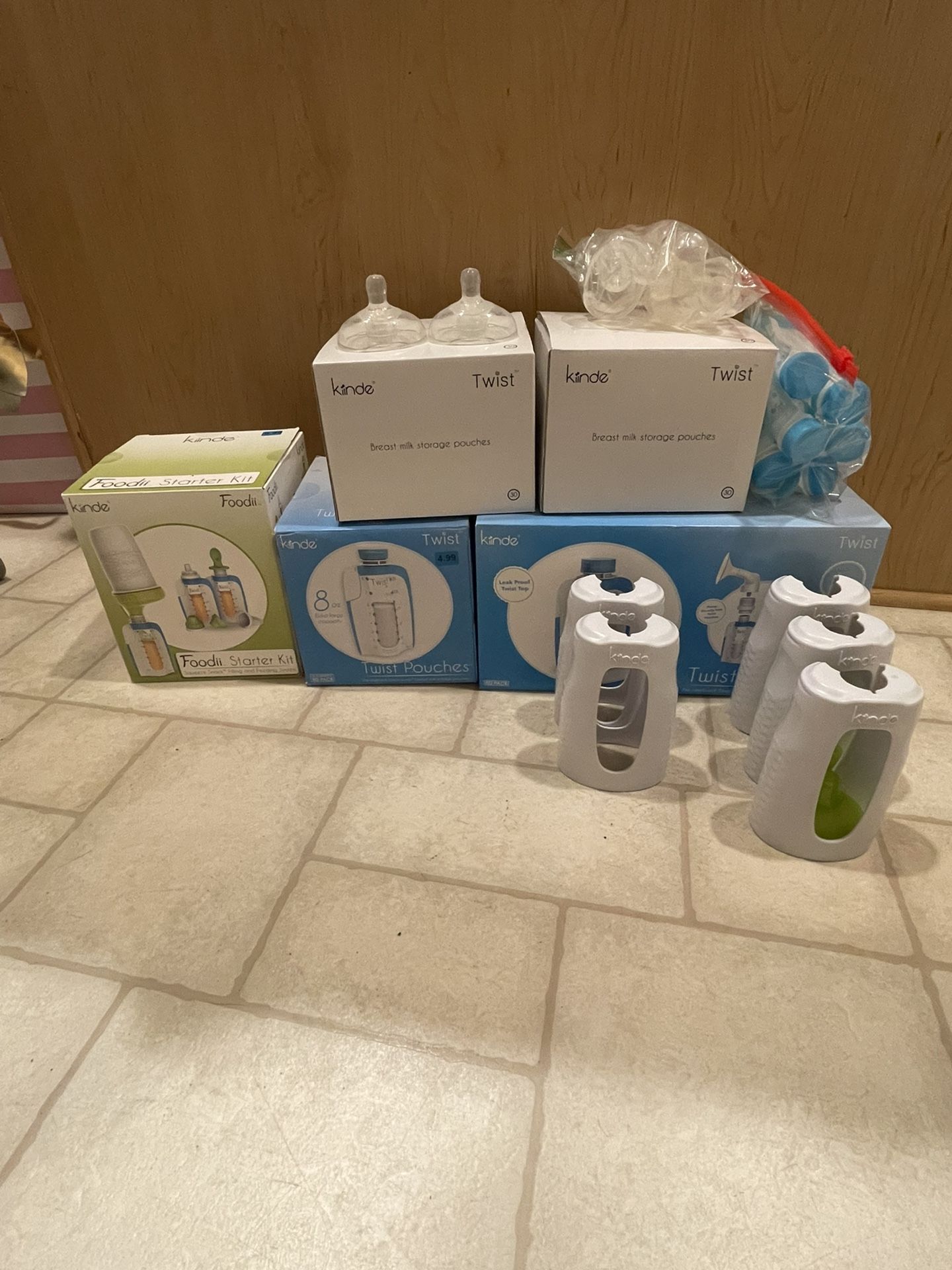 Kiinde breast feeding bags,bottles, nipples, and foodii starter kit 147 6oz breast milk/food storage bags 40 8oz breast milk/food storage bags 1 foodii stater kit 6 medium flow nipples 2 fast flow nipples 3 slow flow nipples with cases 5 bottles Asking $95 for all Located in Boulevard 91905 but can meet in lakeside 92040 during the week