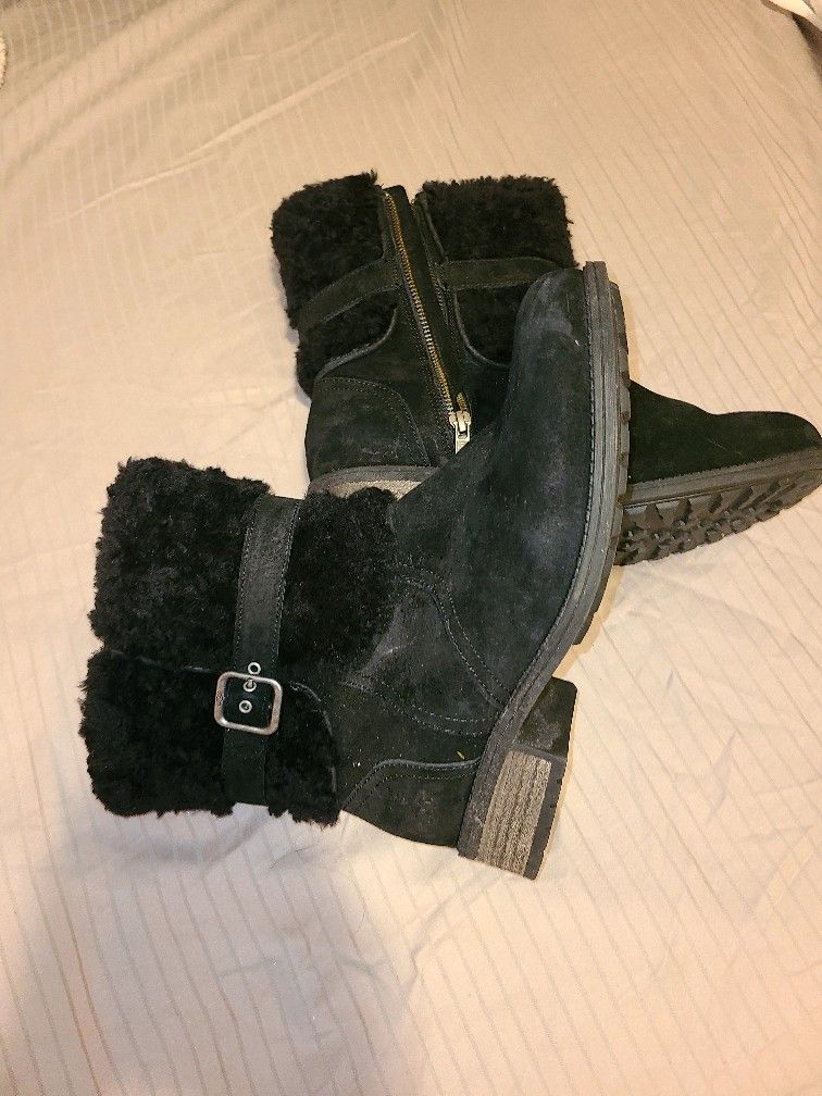 UGGS AUSTRALIA , Shuede ,Black boots, sheep inside in very good condition , very warm and soft 10 size . Make a reasonable offer !