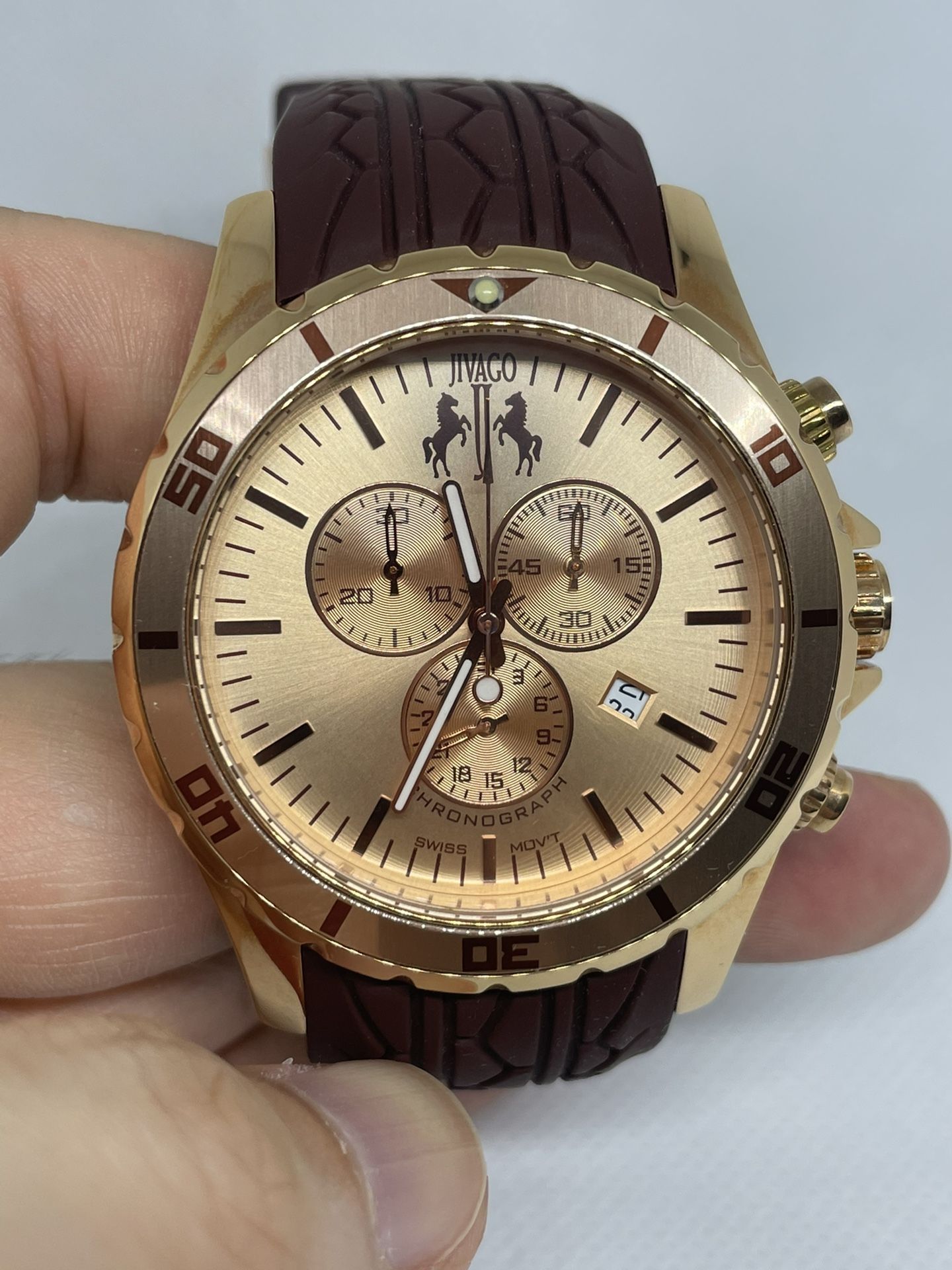 Like new mens Jivago rose gold watch. Like new condition, just has a smudge on the side of the watch after polishing (see photo).