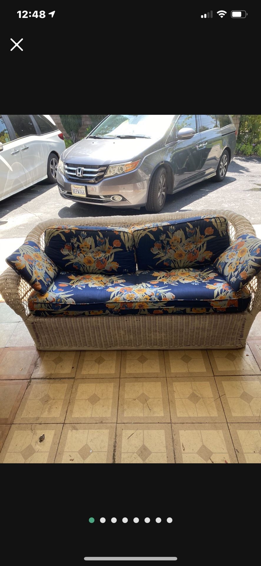 Couch Cool outdoor or indoor couch Wicker has small tear. Needs a different cushion Cushion has a tear $199 SERIOUS OFFERS ONLY. CASH AND PICK UP ONLY. SORRY NO TRADES OR DELIVERY