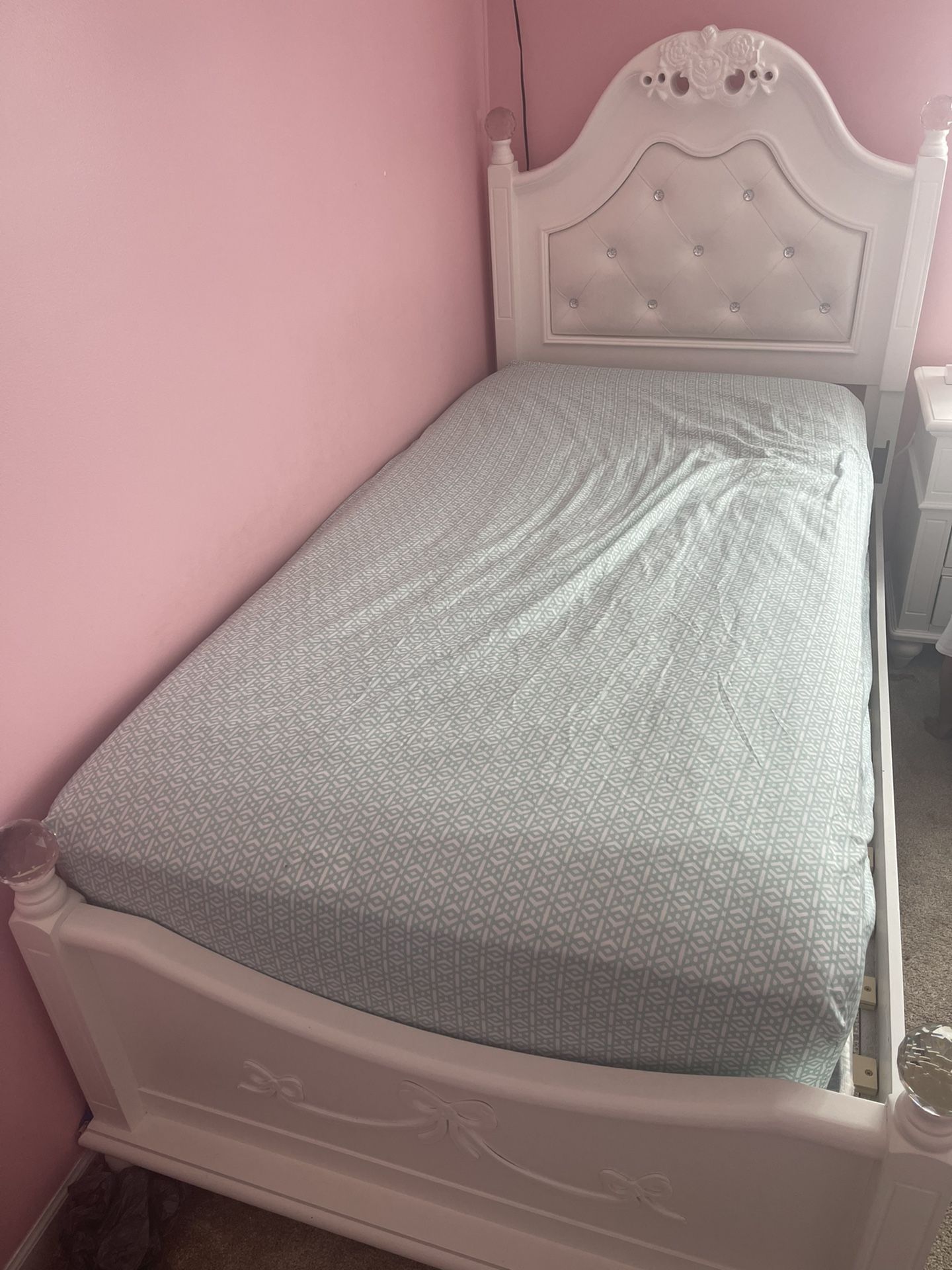 2 twin bed(not including mattress and box spring) 2 new night stand and 1 chest