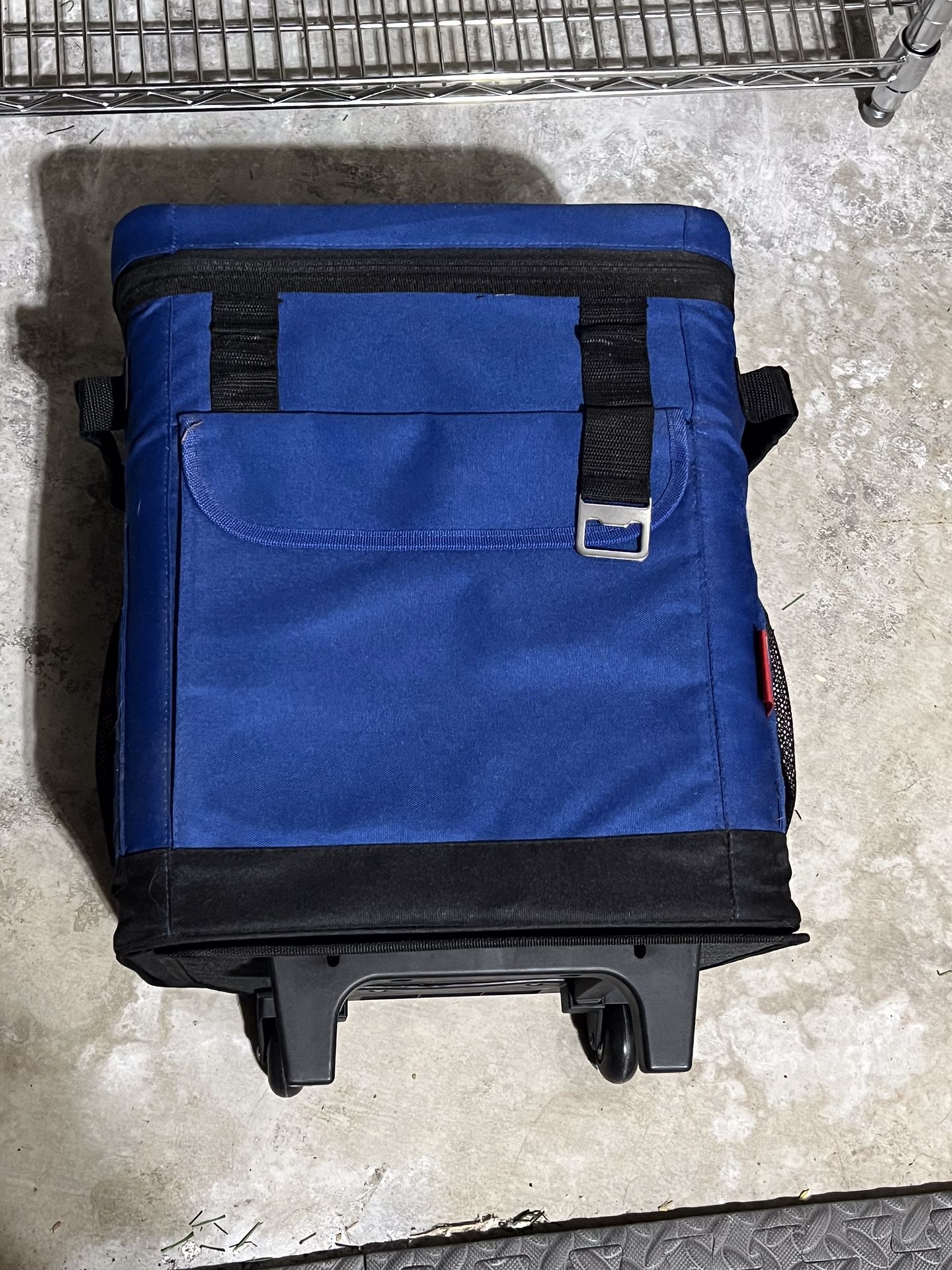 Brand New! Unused! Rolls on wheels, has a bottle opener attached, and easy access opening in lid. Great cooler for the summer!