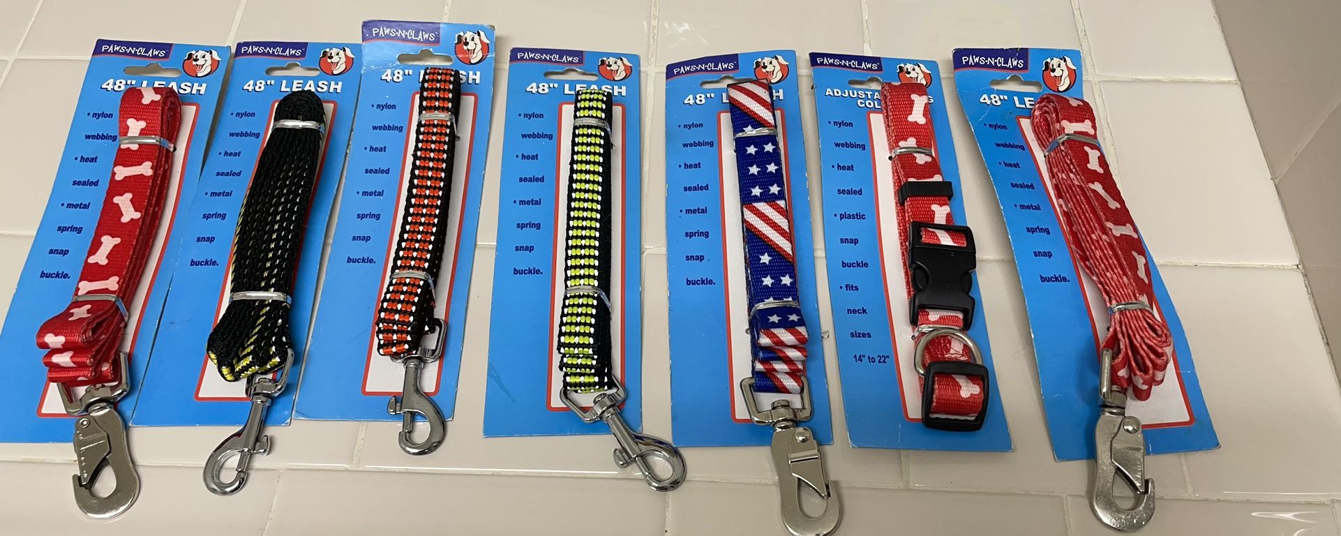 Dog leashes and 1 collar, brand new, never worn. Collar is for large dog.. 14” to 22”.