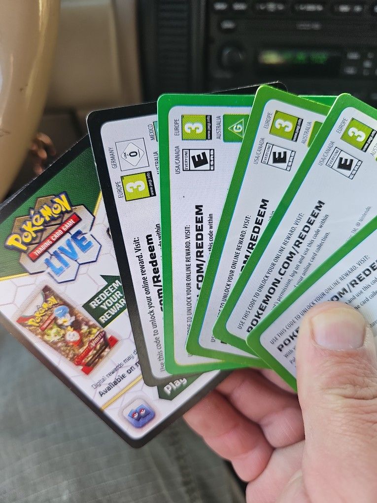 Not Used Pokémon Live Redemption Cards
