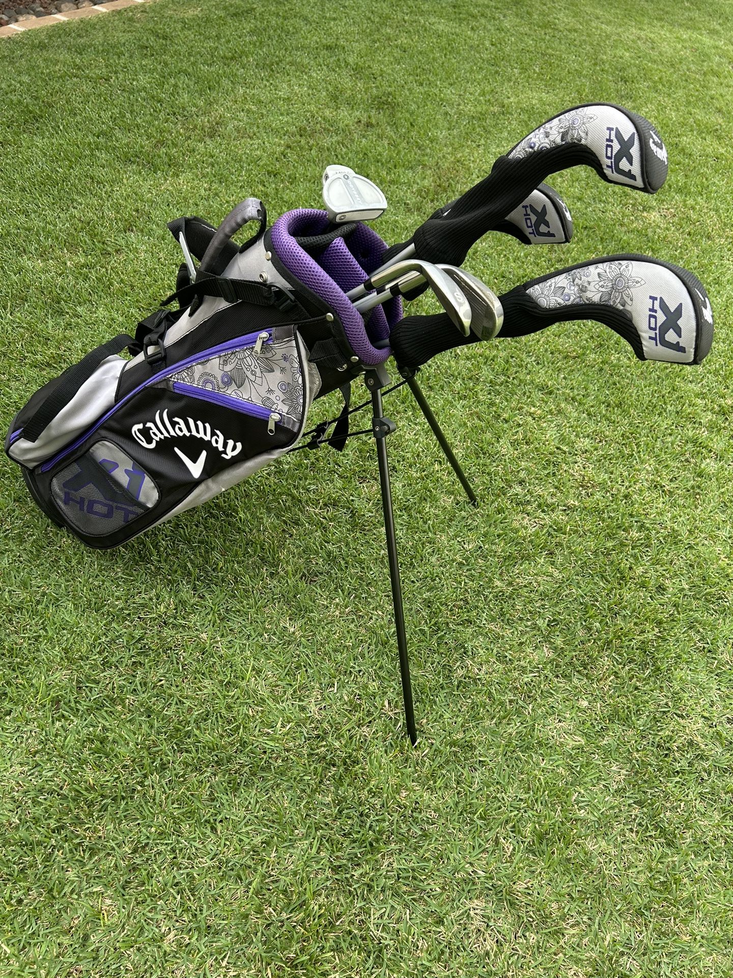 DRIVER 360cc Lightweight Driver features a large, effective hitting area for outstanding forgiveness and longer drives FAIRWAY WOOD & HYBRID Designed to help get the ball in the air quickly and easily 7-IRON, 9-IRON & SAND WEDGE Cavity Back Irons with Extreme Weighting for amazing forgiveness and stability, and a 54-degree Sand Wedge for impressive control PUTTER Legendary Odyssey 2-Ball design for ultimate Tour-proven accuracy STAND BAG Lightweight stand bag features a 5-way top,5 zippered pockets, water bottle holder, double strap, and rain hood