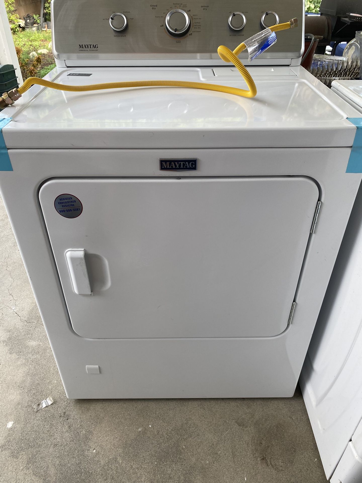 Maytag gas dryer for sale. Clean inside and out and in great condition. Includes the yellow gas flex line shown in the photos. Works well and looks very clean. Good option if you need a dependable gas dryer without paying retail prices. Details: • Maytag gas dryer • Clean drum and lint screen area • Includes gas connection line • Normal cosmetic wear only • Ready for pickup Local pickup only. Message me if you’re interested.