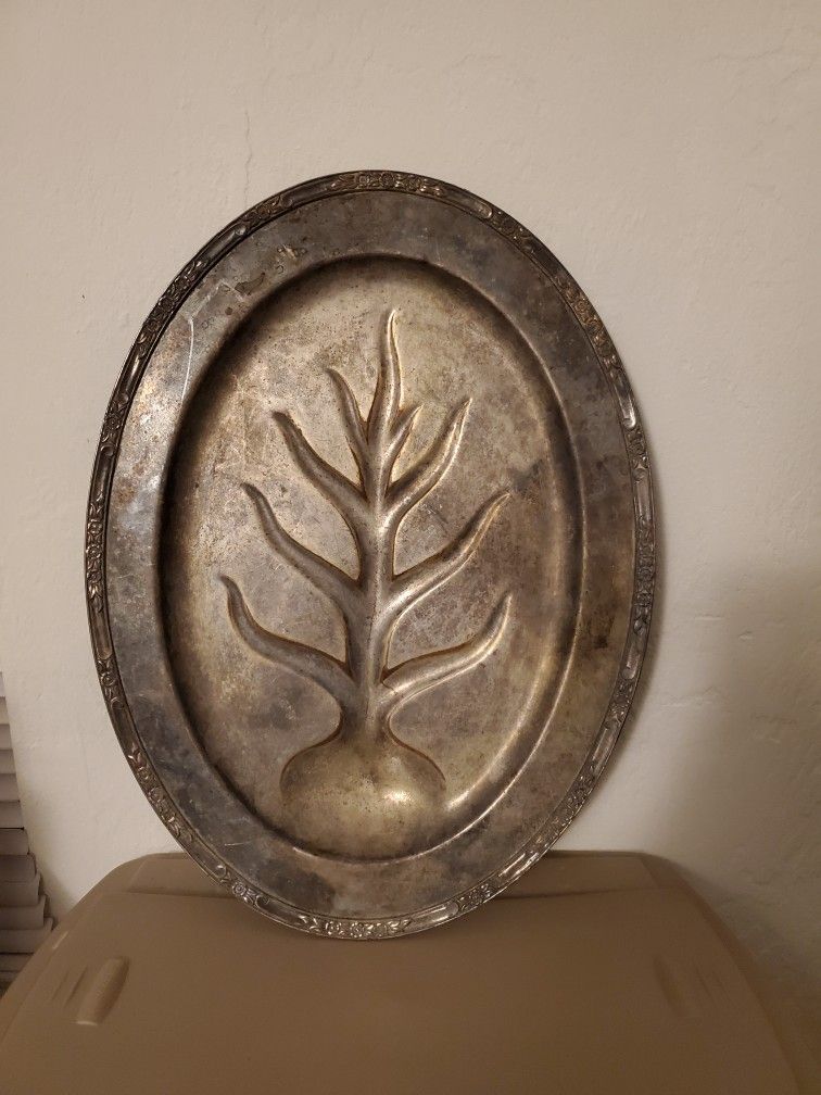 Large Metal Footed Platter Decor Dish Tray (Alot Of Discoloration And Wear)