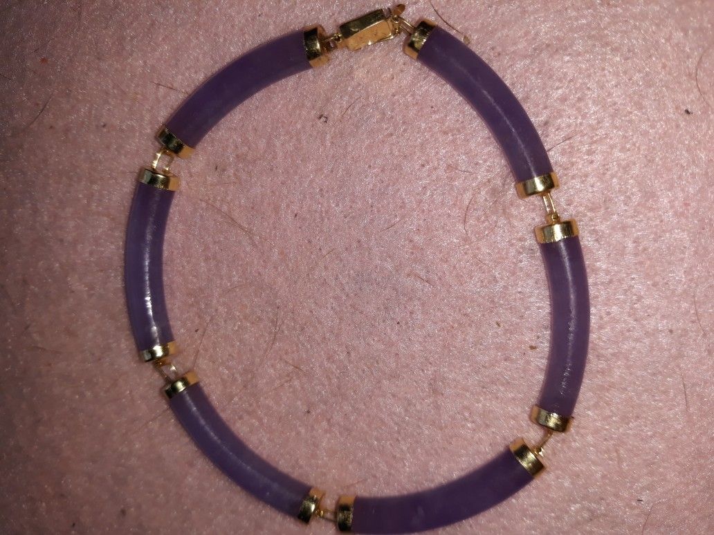 14k yellow gold Safety clasp 7.25 inchs Vintage 1970's Lavender Jade New old stock