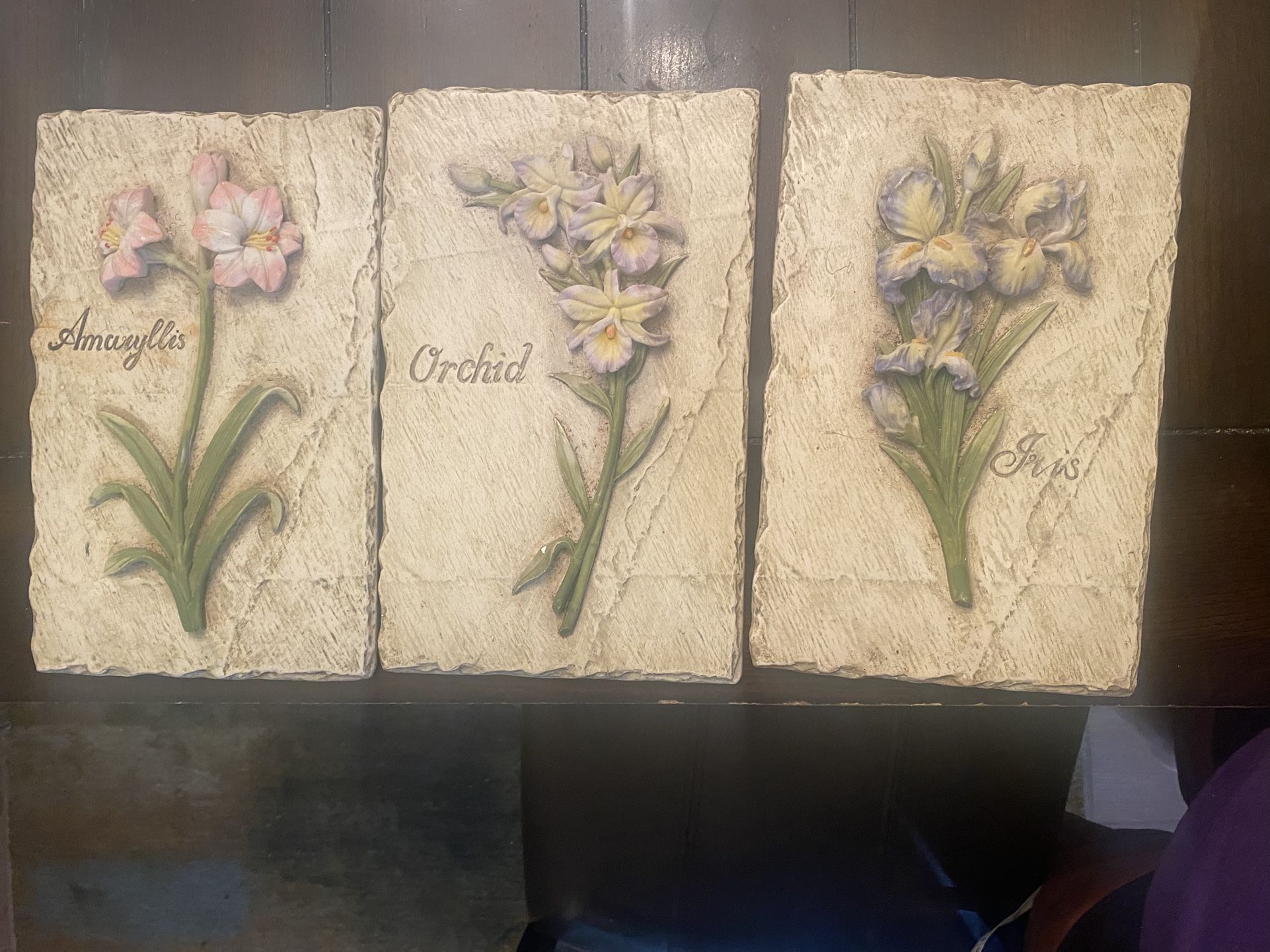 Set of 3 ceramic picture/art pictures for home decor. Brand: Home Interiors