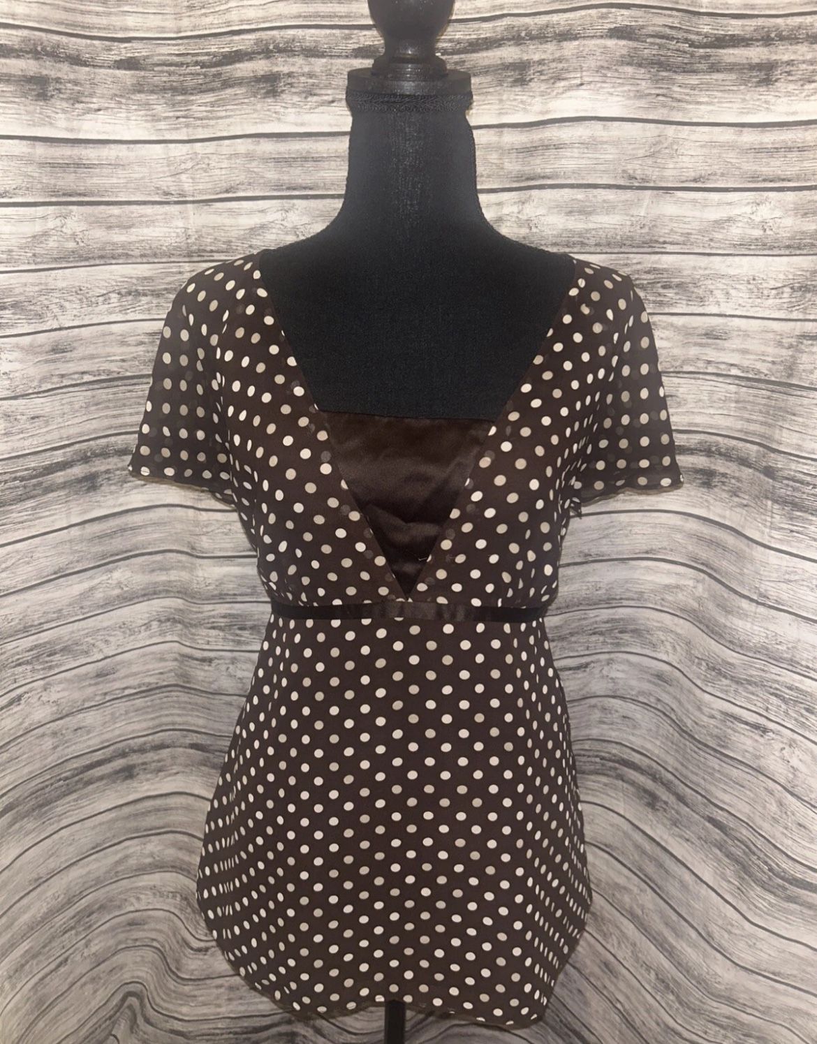 NINE & CO NEW Womens Brown Polka Dot Top Blouse Sz 12