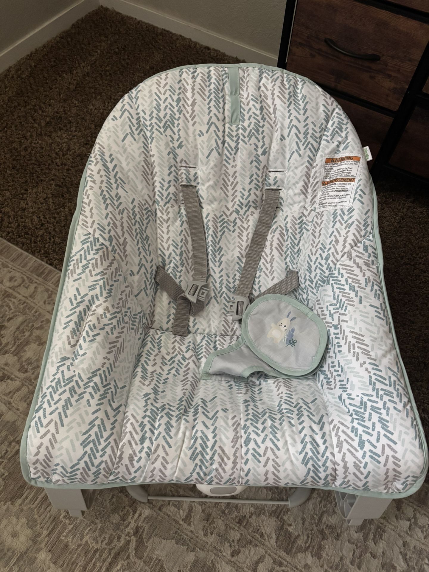 3 in 1 bouncer rocker chair for infants. Missing the hanging toys still vibrates. Used but in great conditions.