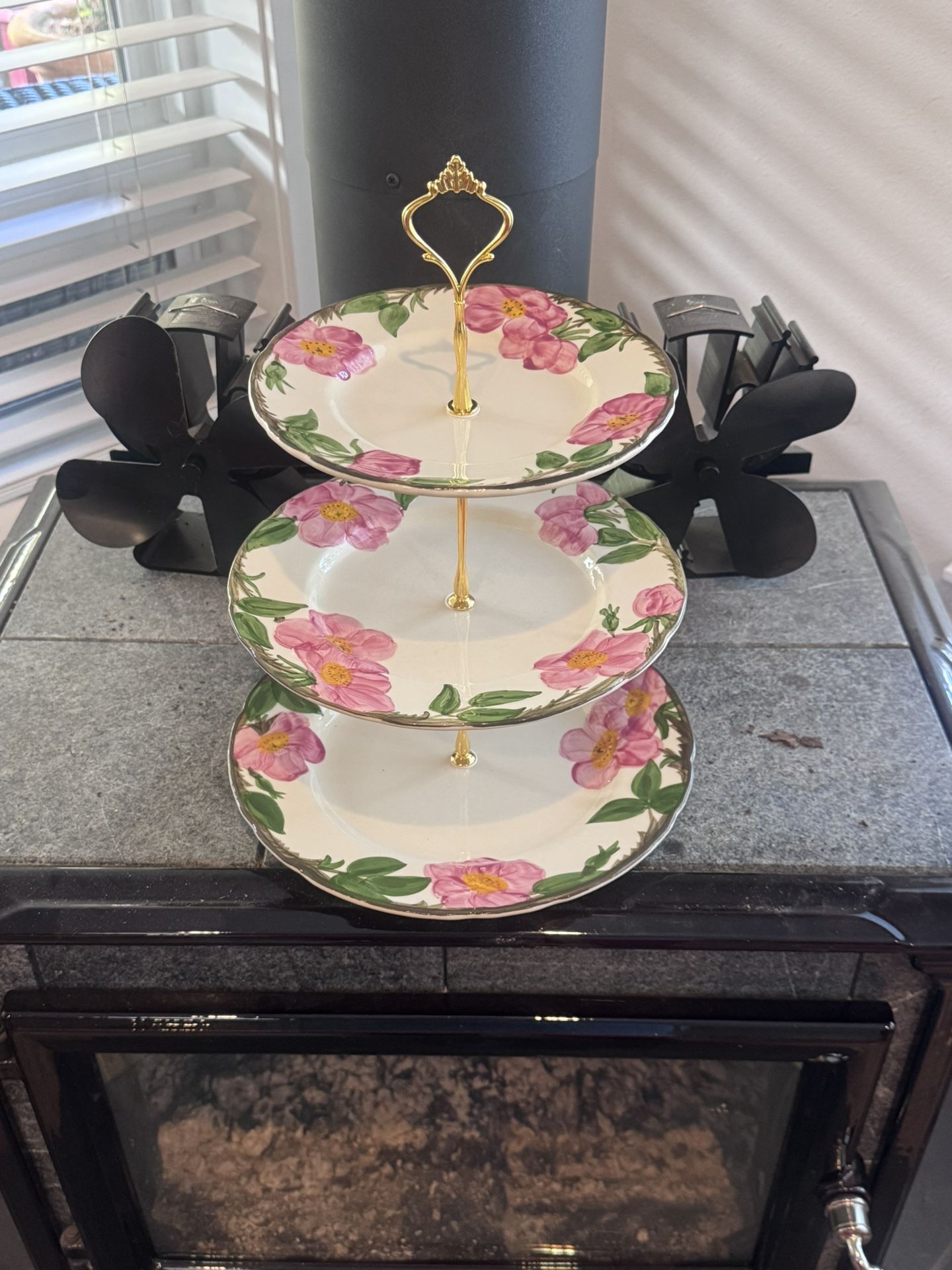 Beautiful three tiered 8 inch 9 1/2 inch 10 1/2 inch looks brand new try and find one in the Pacific Northwest will ship at buyers expense