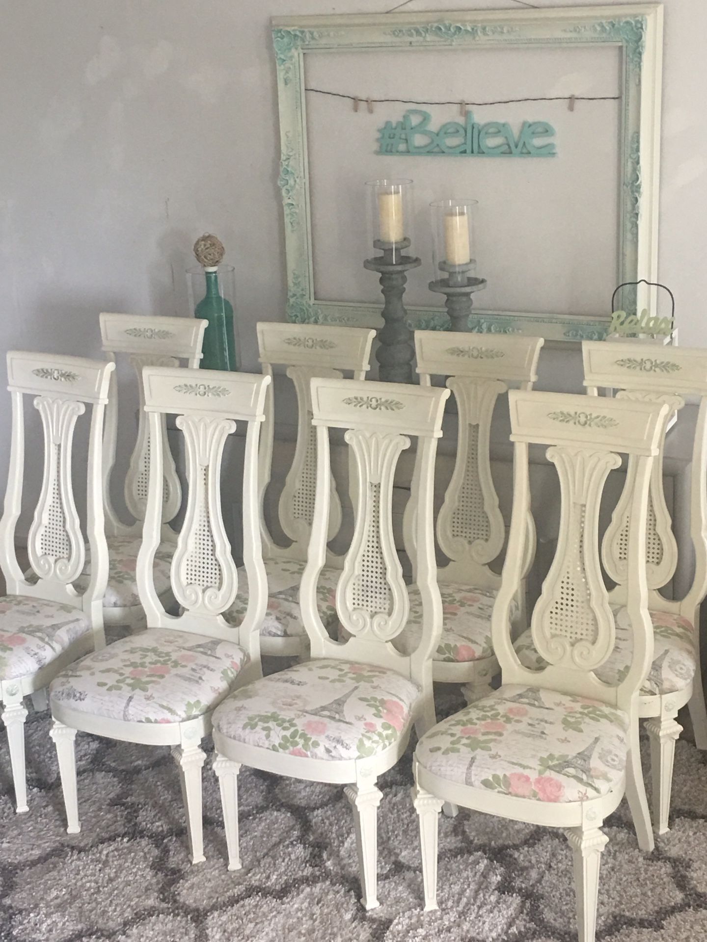 Vintage French dining room table set 8 chairs. Table measures, 86X44 inches, tall 30 inches. Color old white. I accept cash credit & debit cards.