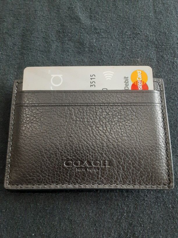 Leather Money Clip with card slots from Coach New York. Immediate availability by the Galleria of Elgin shops on Rt 20. Se habla Español.