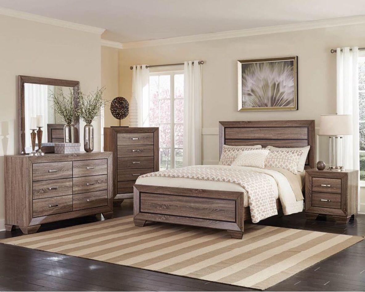 4-PCS Queen or Full Bedroom Set in Offer New in box 📦 Included: Queen Bed, Dresser,Mirror and nightstand Delivery service Hablamos español también Maranatha Furniture