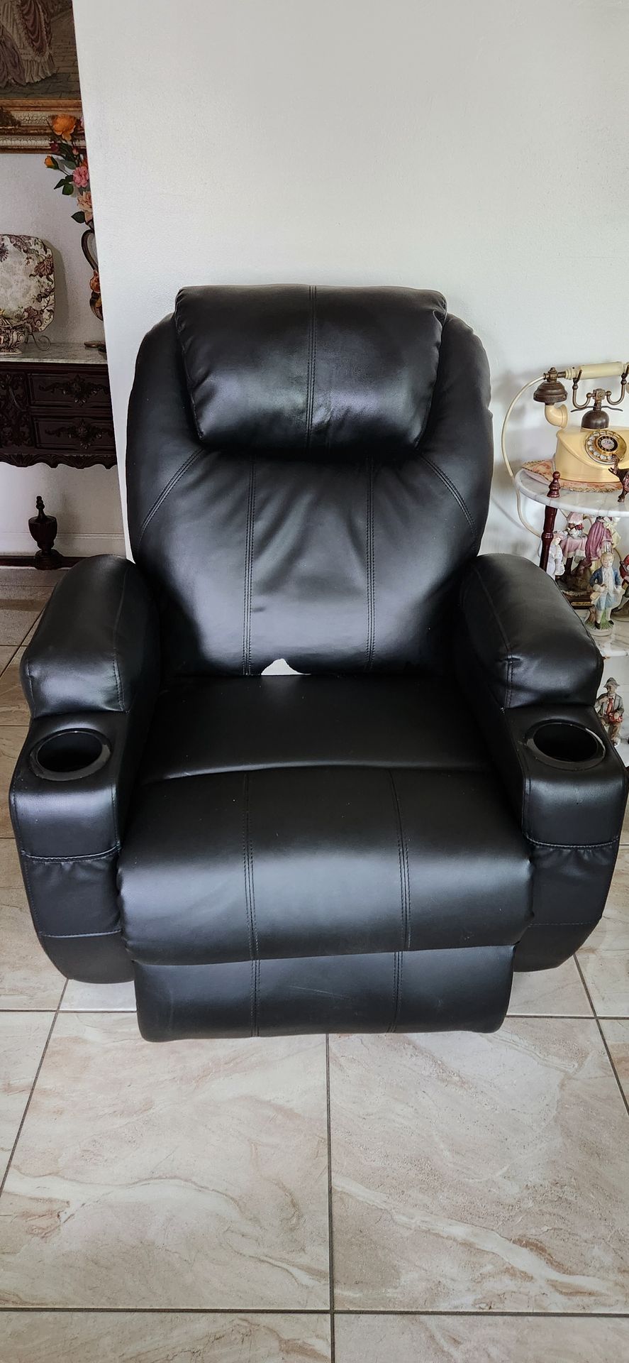 Recliner chair w/massager, works perfectly. Has a minor tear as you can see, other than that it's in great condition. Purchased back in June 2025. Looking for $200 OBO