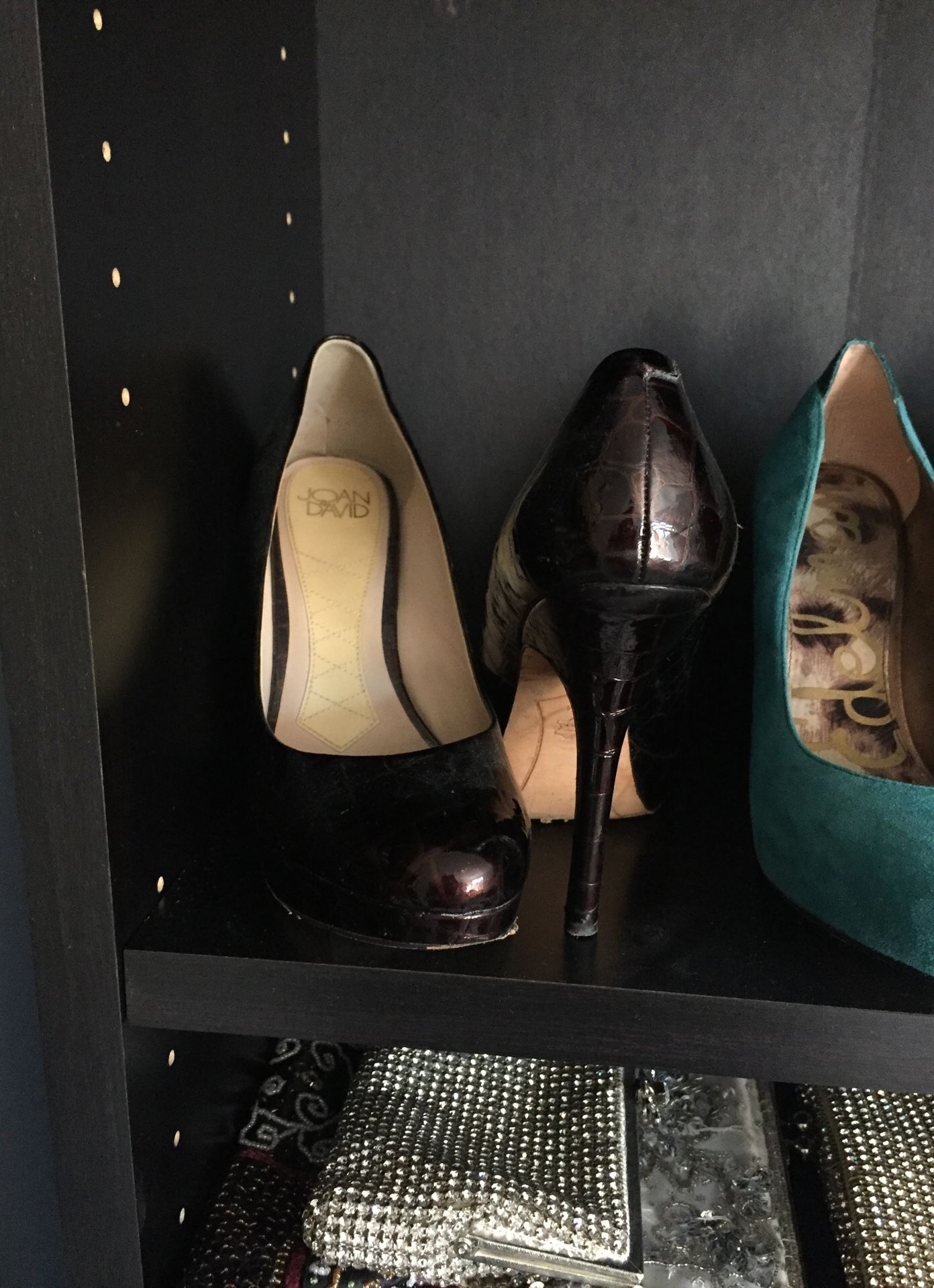 Joan & David size 8 Medium patented leathered crocodile style pattern tall heel with a platform