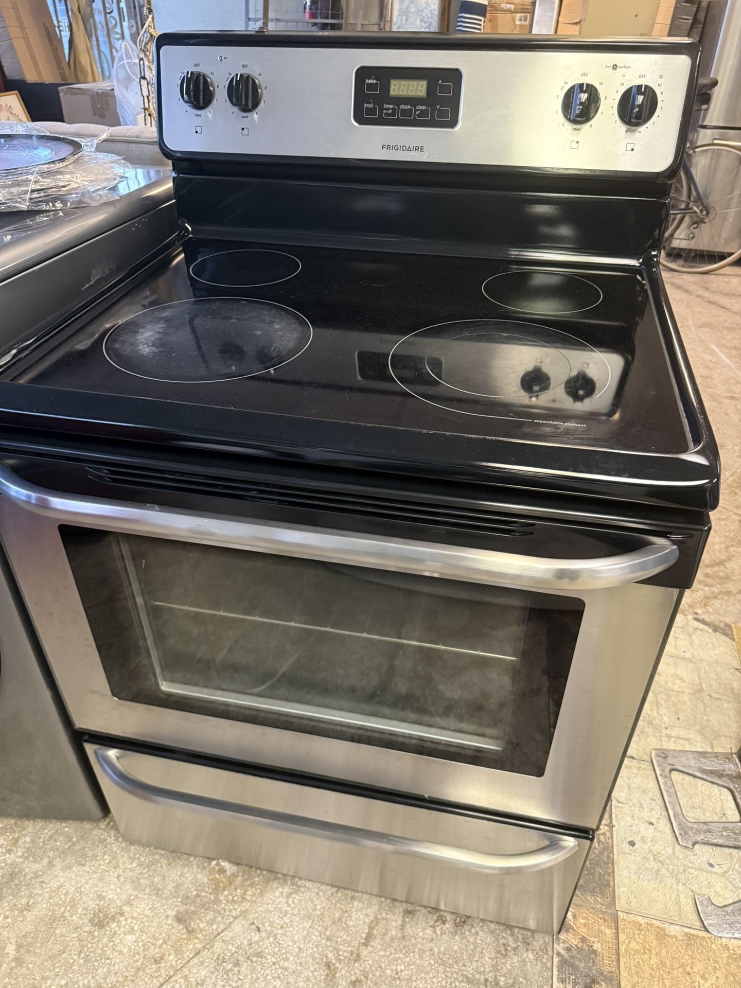 FRIGIDAIRE GLASS TOP STAINLESS STEEL ELECTRIC STOVE NORMAL WEAR ON GLASSTOP WORKS GREAT 30 DAY EXCHANGE WARRANTY