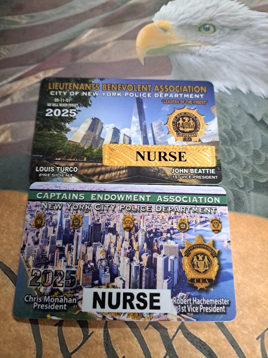 NOVELTY (2) 2025 COURTESY LBA LIEUTENANTS BENEVOLENT ASSOCIATION AND CEA CAPTAINS ENDOWMENT ASSOCIATION NURSE. THESE ARE COURTESY NOT A GET OUT OF JAIL ITEM. HOLDS NO POWER OF AUTHORITY. THESE ITEMS ARE IN FULL COMPLIANCE WITH UNITED STATES FEDERAL LAW: 18 USC 716 ET SEQ.