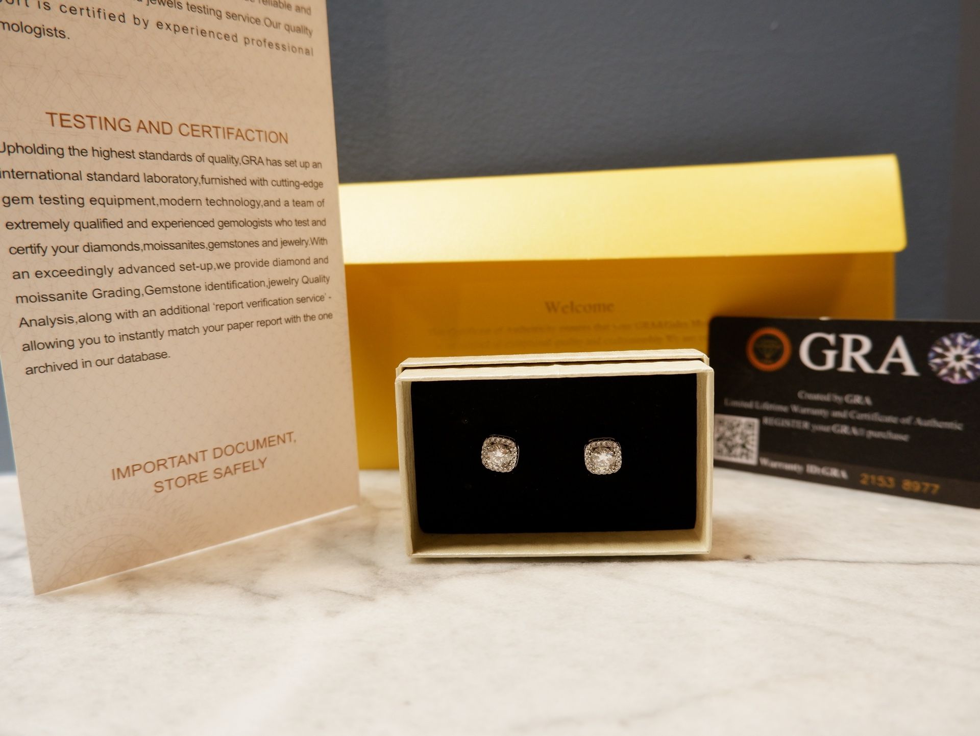 These square moissanite studs are crafted to deliver nonstop brilliance with a fully iced-out surface of stones. The clean cushion shape gives them a modern, structured look while allowing maximum light reflection across the stones. Each stone throws off vibrant flashes of fire, including subtle rainbow tones, creating that unmistakable glow in any setting, while passing any standard diamond tester. Built to shine under everyday lighting or direct flash, they combine durability, clarity, and serious sparkle without the premium price tag of natural diamonds.