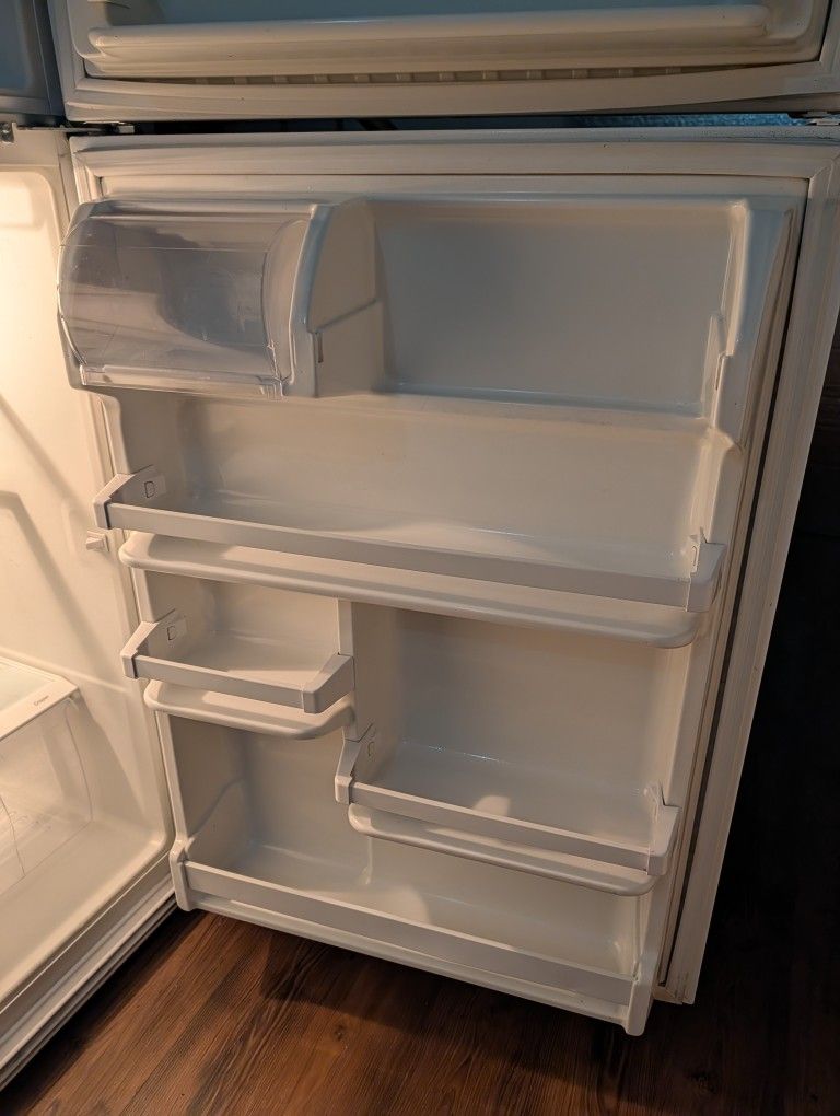 Whirlpool refrigerator. Works well. White. It has a crack on a drawer , it was glued back with crazy glue. Asking $155 OBO Refrigerator whirlpool Blanco. Trabaja Bien. Tiene un cajón que se pego con cola loca, Pero funciona Bien. Enfría muy Bien. El congelador sirve Bien. $155 o mejor oferta. No delivery. No saving it. You must come pick it up and bring help.