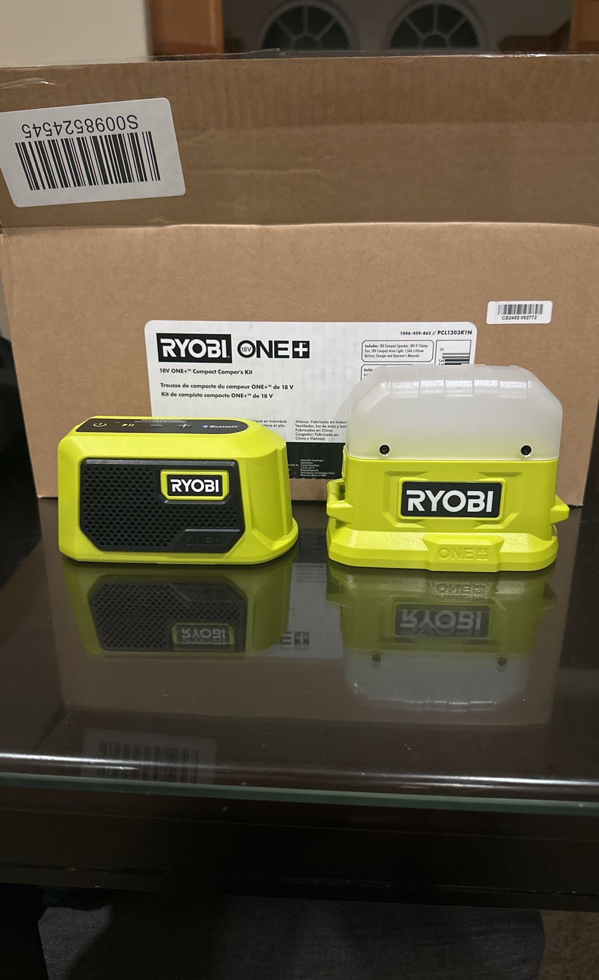 Ryobi one plus blue tooth speaker and light. Both items are brand new. It came in a combo kit that i was gifted and i have no use for it. No battery included. It takes a ryobi 18v battery. Great for camping or outdoor activities.